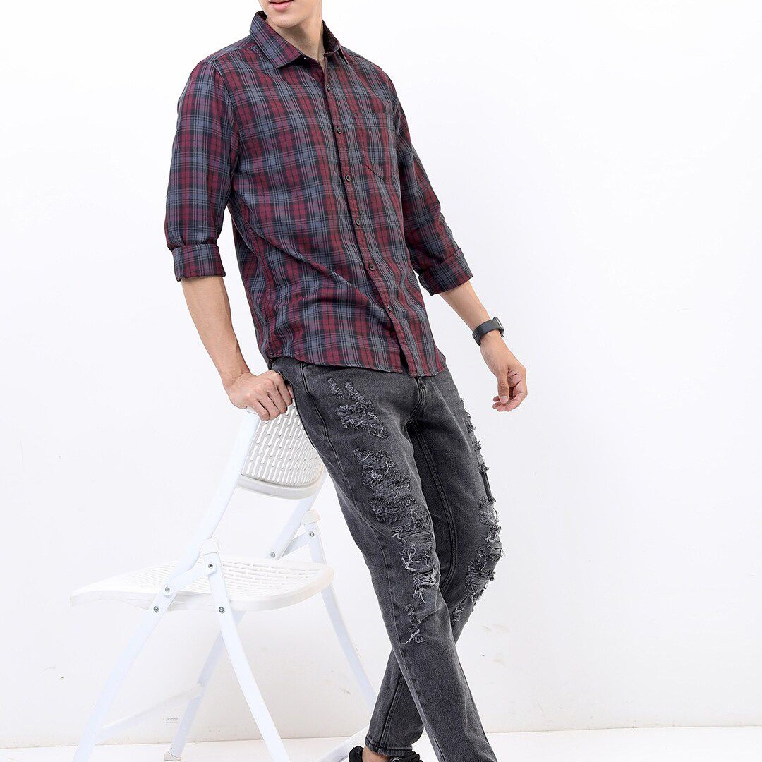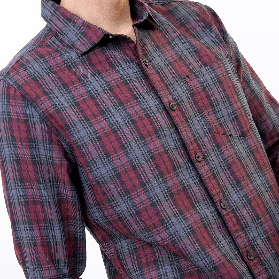 HIGHLANDER Men Maroon Slim Fit Tartan Checked Casual Shirt