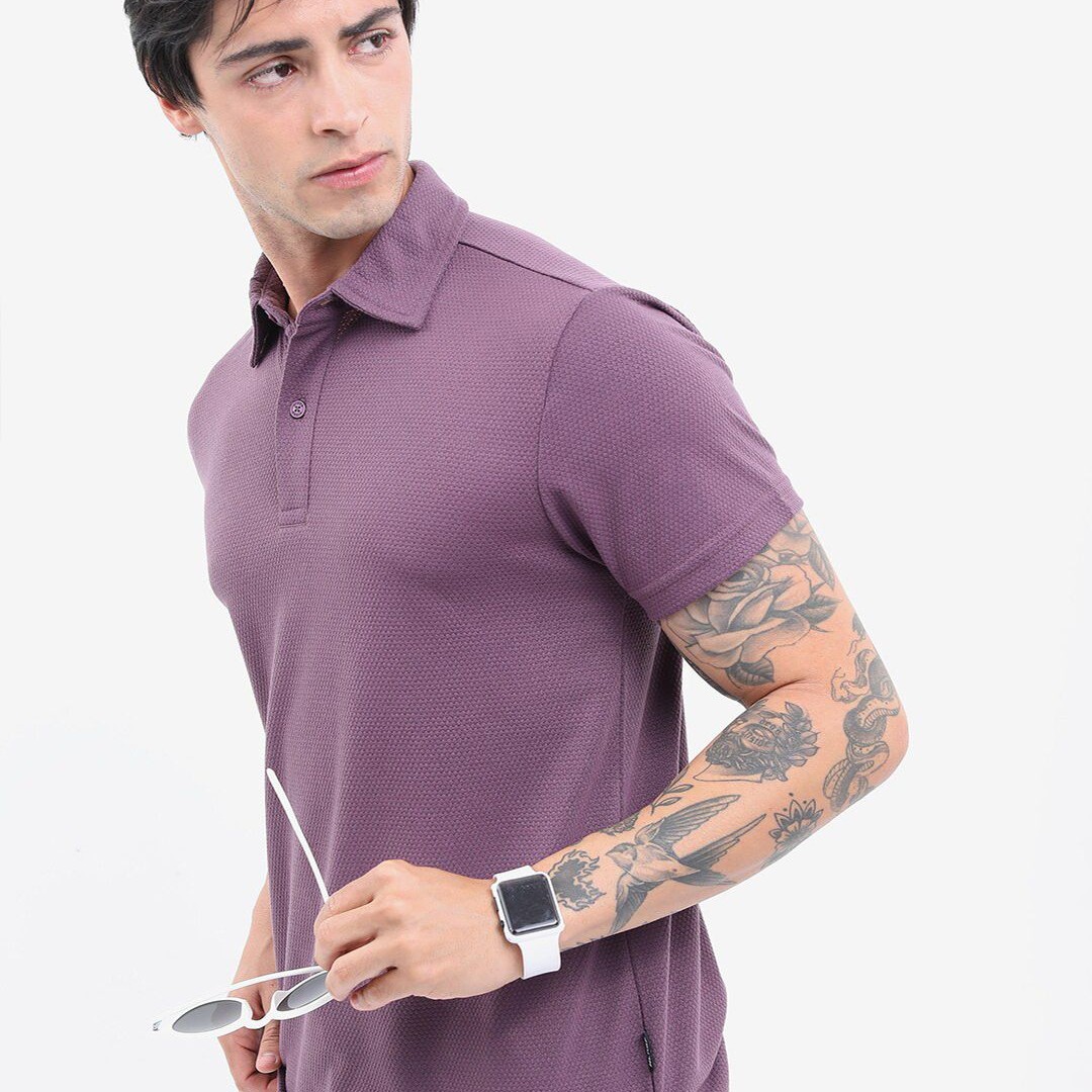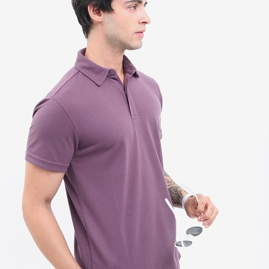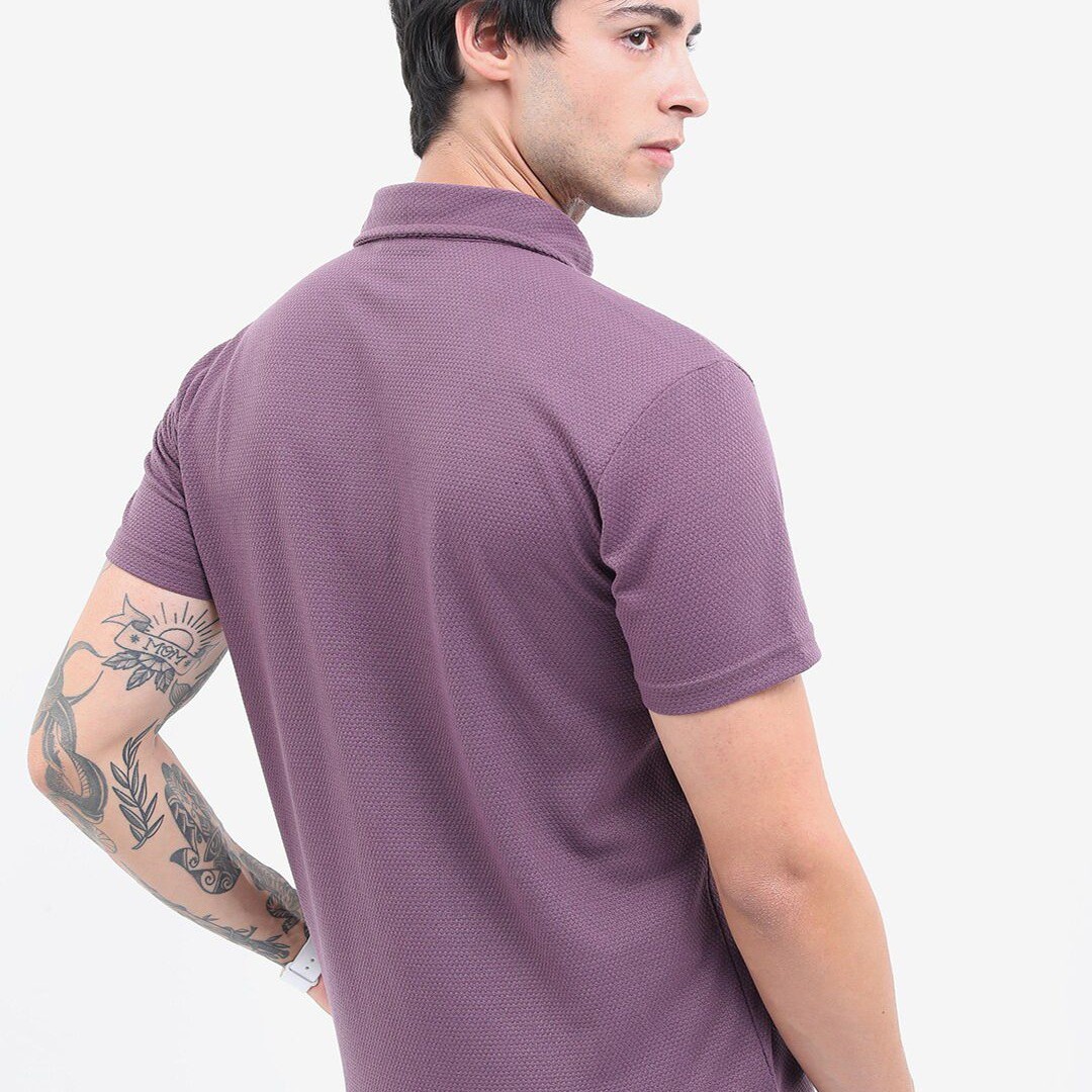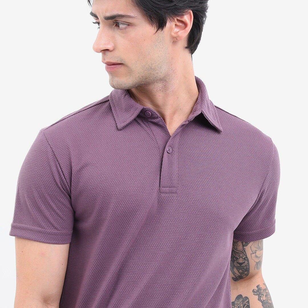 HIGHLANDER Popcorn Structured Polo Collar Regular Fit T-shirt