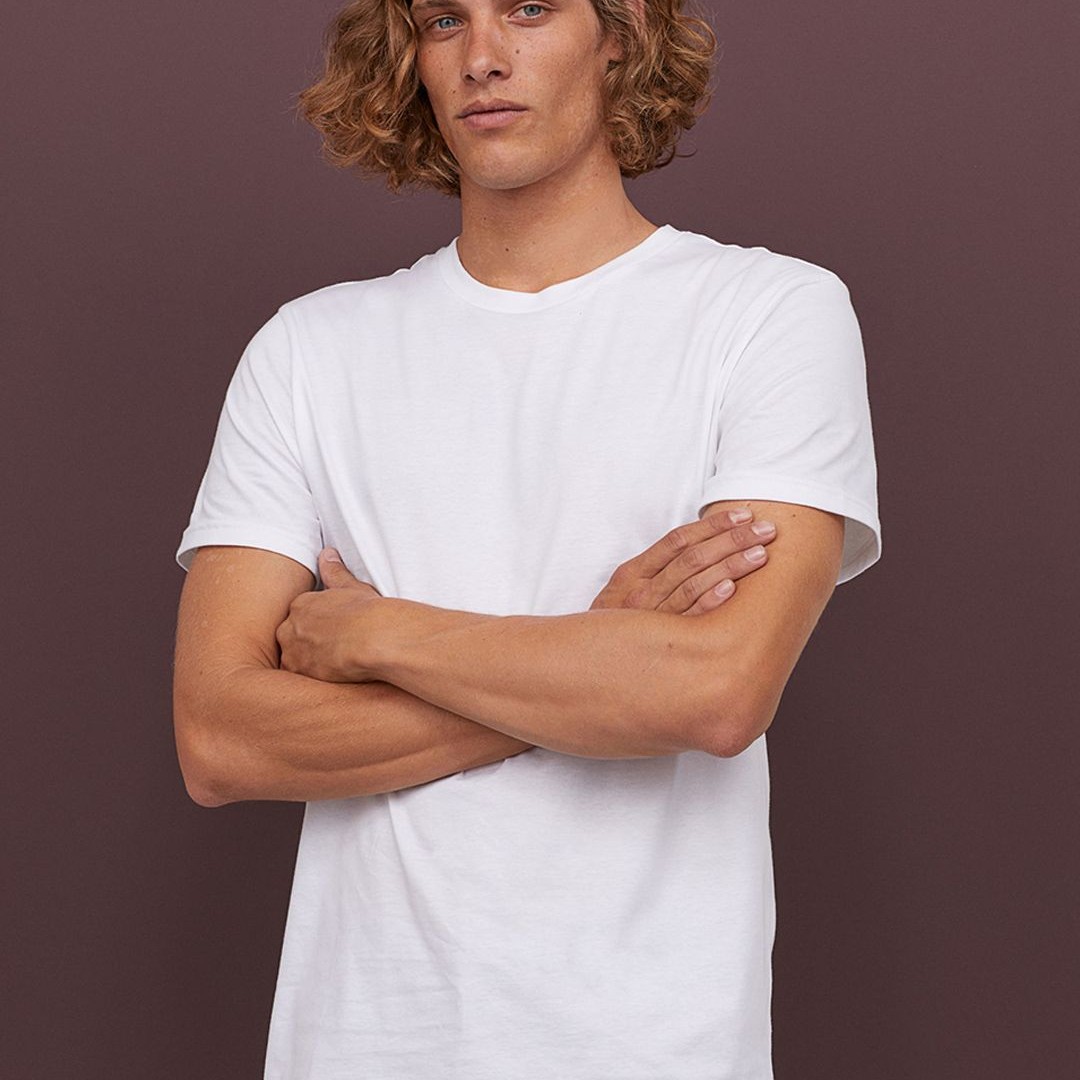 HM Men White Solid Cotton Pure Cotton T-shirt Regular Fit
