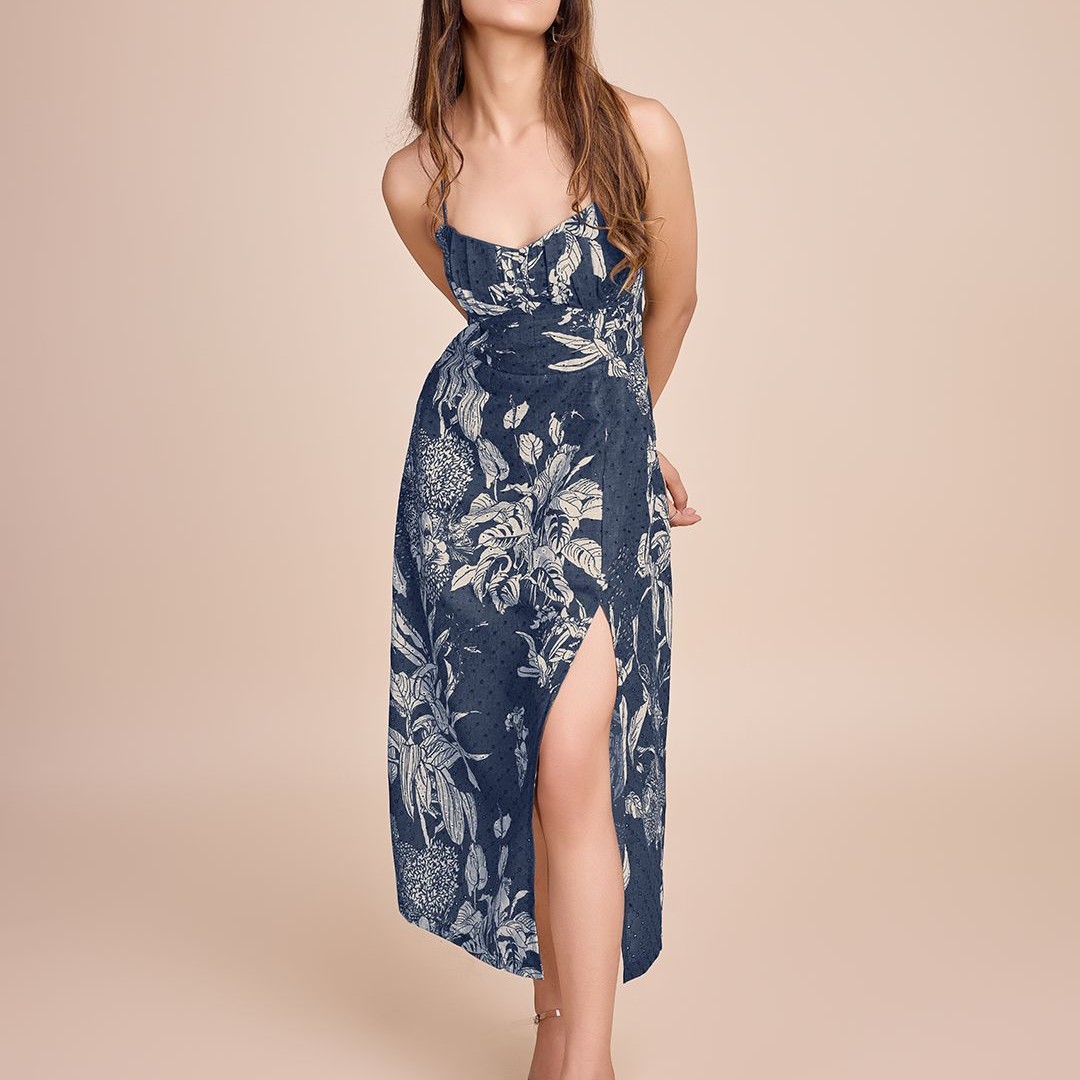 HOUSE OF MIRA Women Floral Printed Cotton Empire Midi Dress