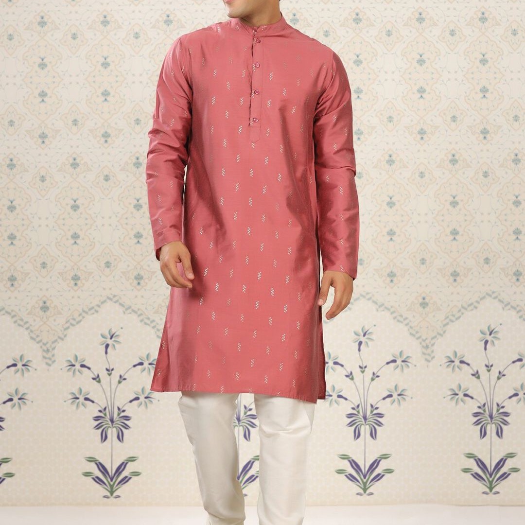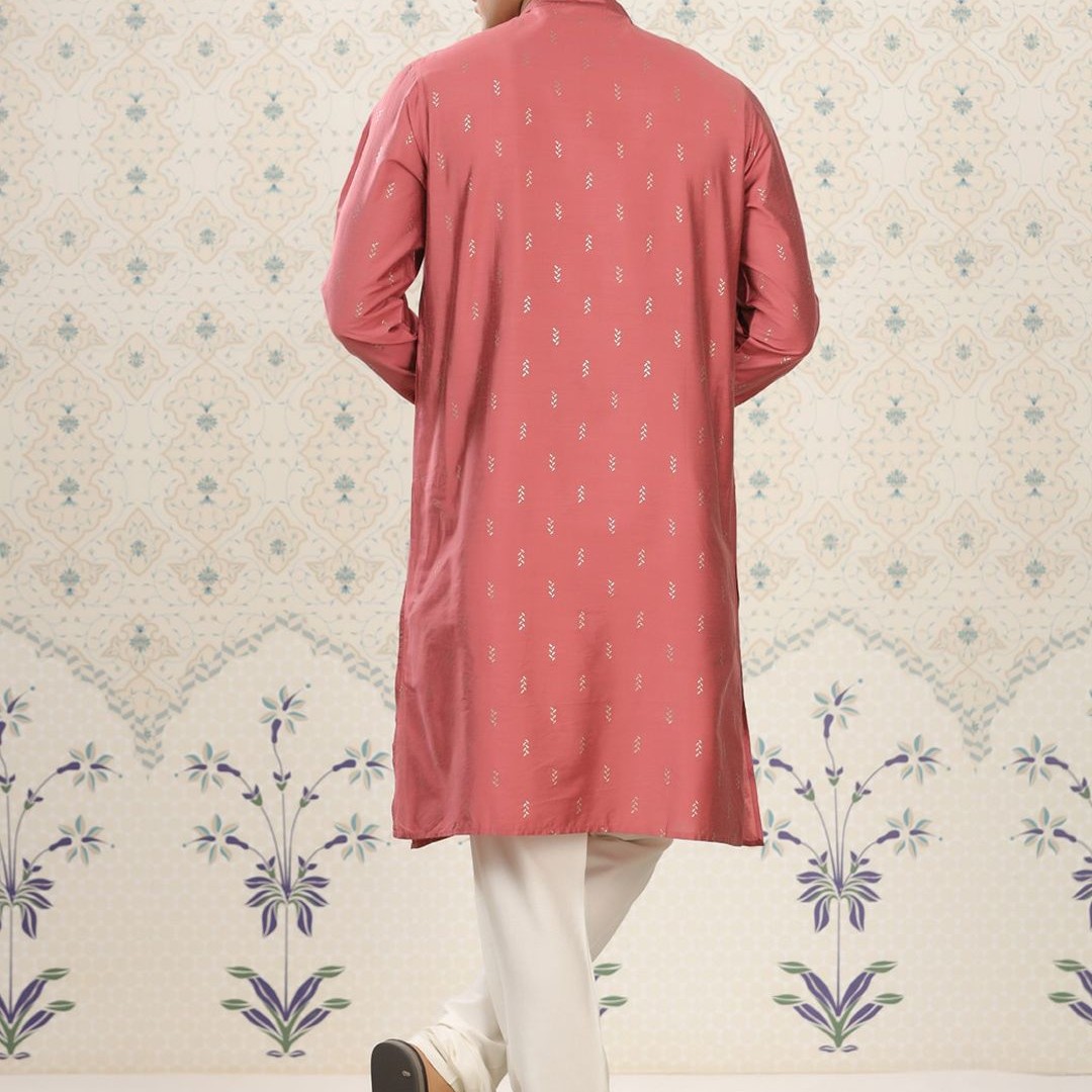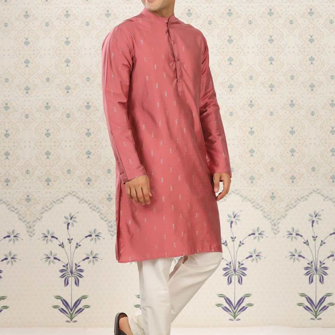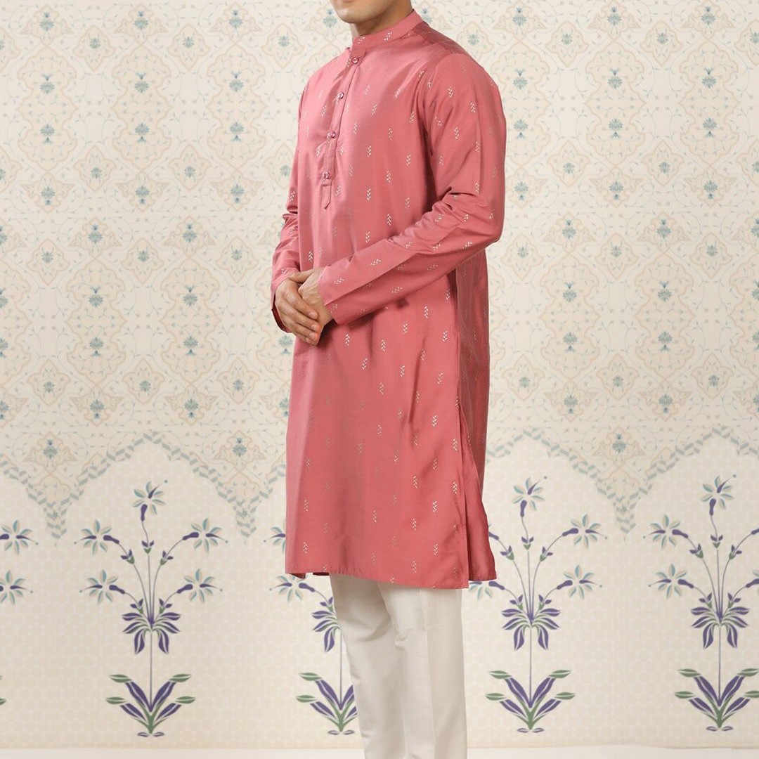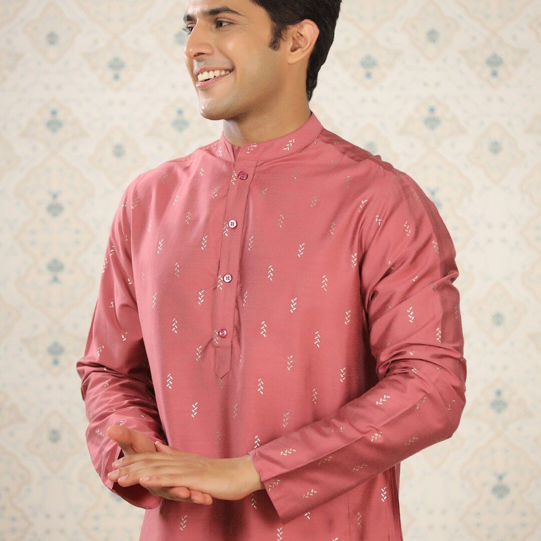 House of Pataudi Pink Ethnic Motifs Printed Mandarin Collar Straight Kurta