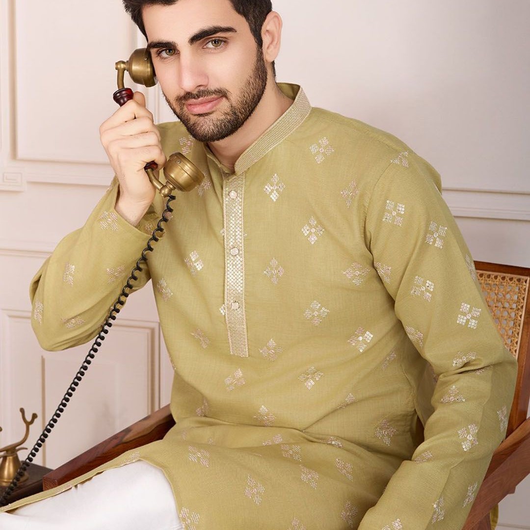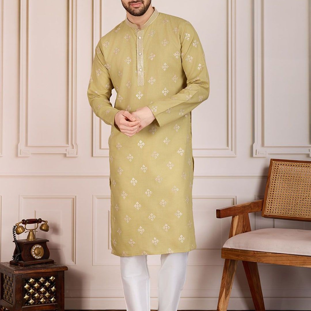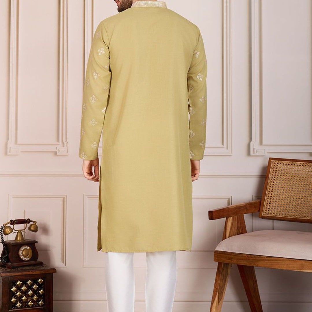 House of Pataudi Pushpa Geometric Embroidered Mandarin Collar Pure Cotton Straight Kurta