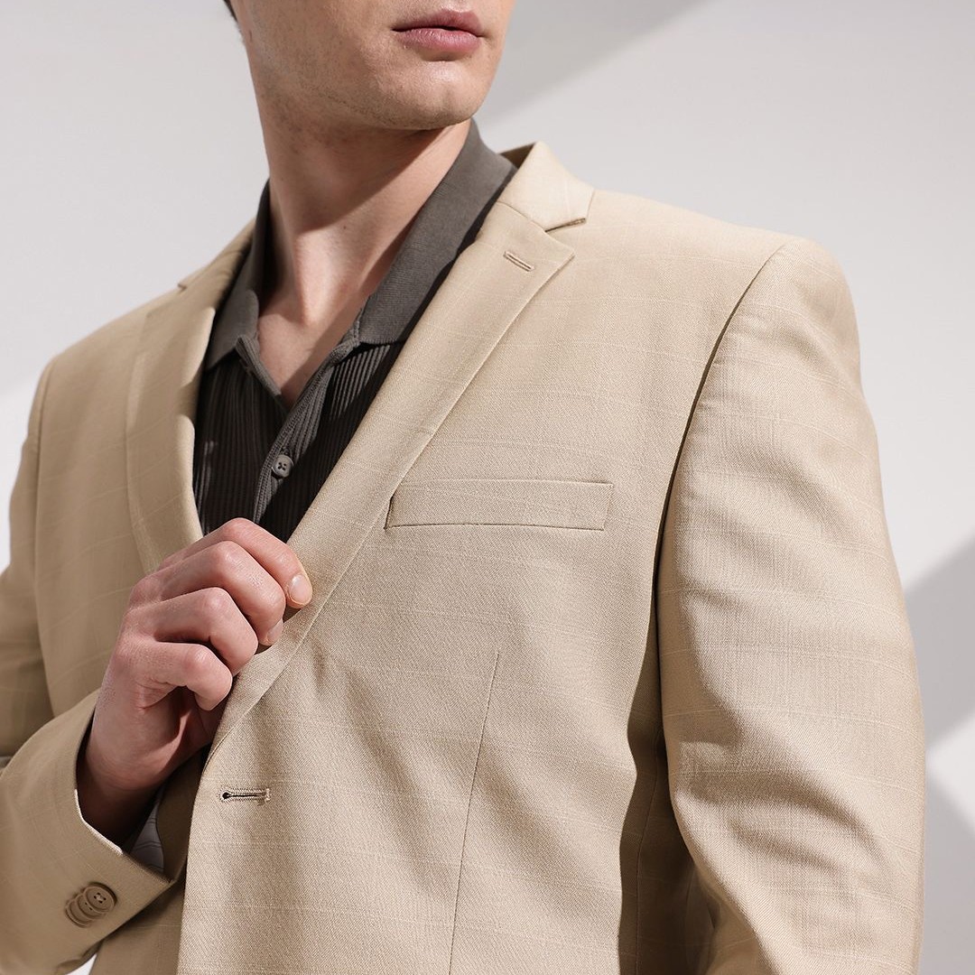 INVICTUS Checked Notched Lapel Collar Slim Fit Semiformal Blazer