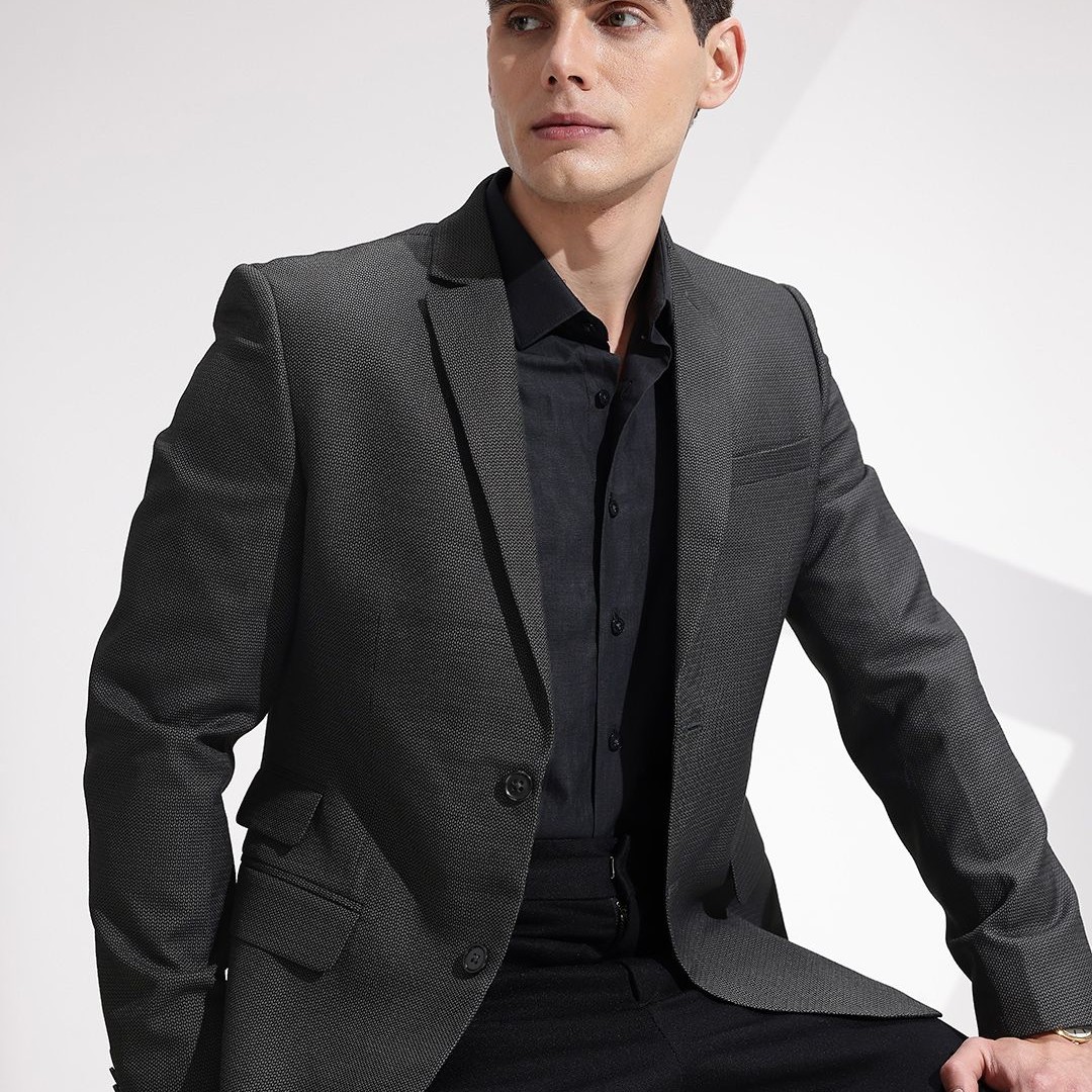 INVICTUS Self-Design Slim Fit Single-Breasted Smart Casual Blazer
