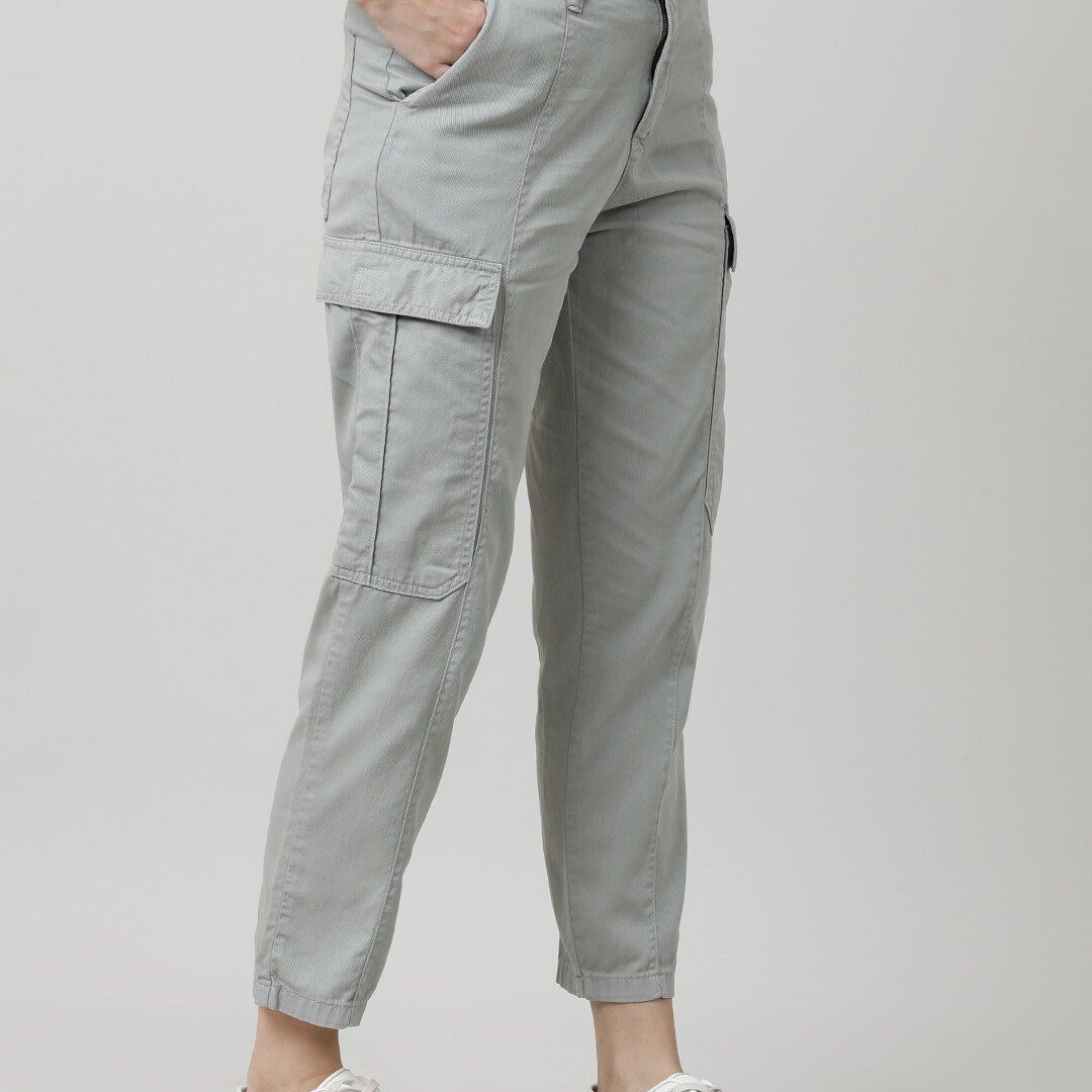 IVOC Women Grey Mid-Rise Cotton Cargos Trousers