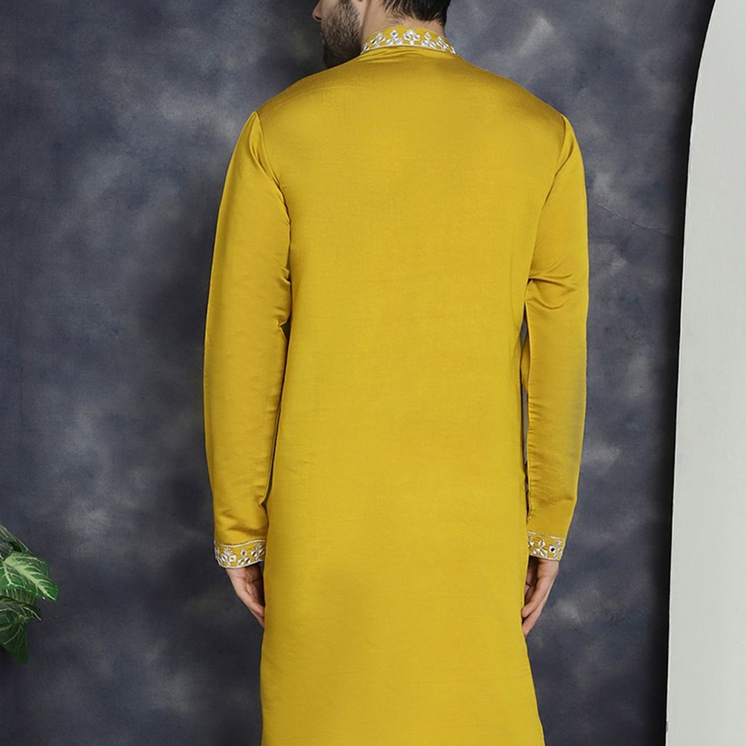 Jompers Geometric Embroidered Mandarin Collar Mirror Work Cotton Silk Straight Kurta