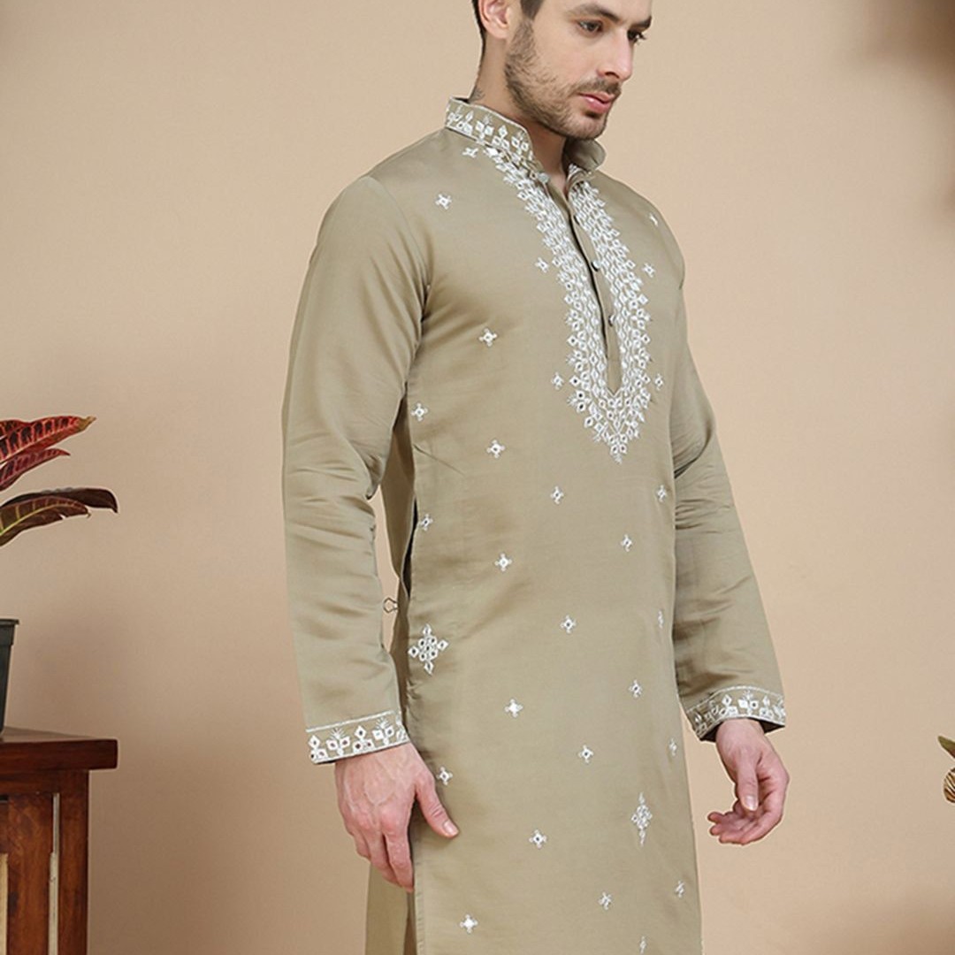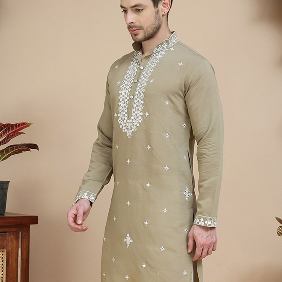 Jompers Men Geometric Embroidered Mirror Work Kurta