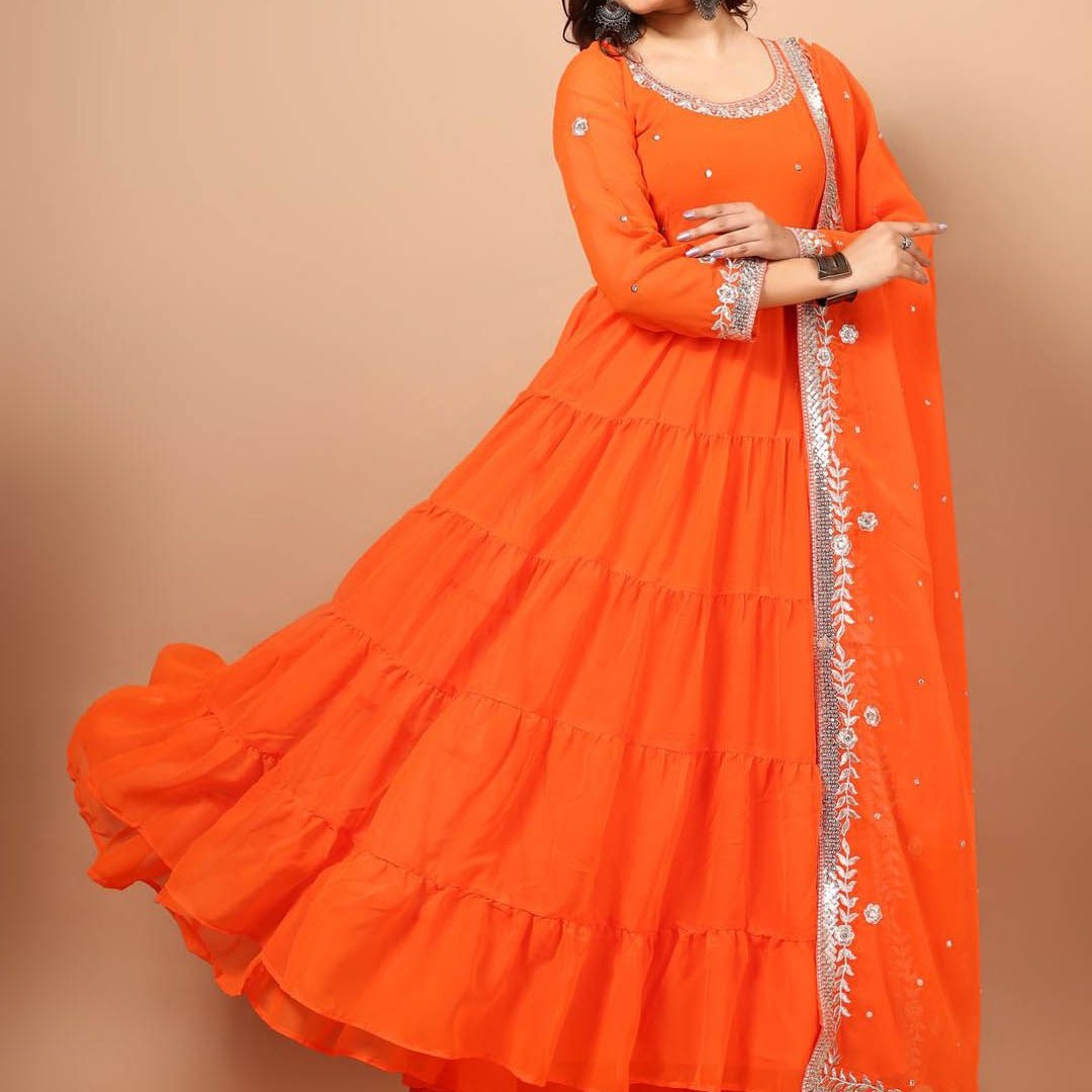 KALINI Floral Embroidered Georgette Anarkali Kurta with Pyjama & With Dupatta