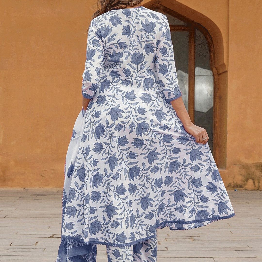 KALINI Floral Printed Anarkali Pure Cotton Kurta with Trousers & Dupatta