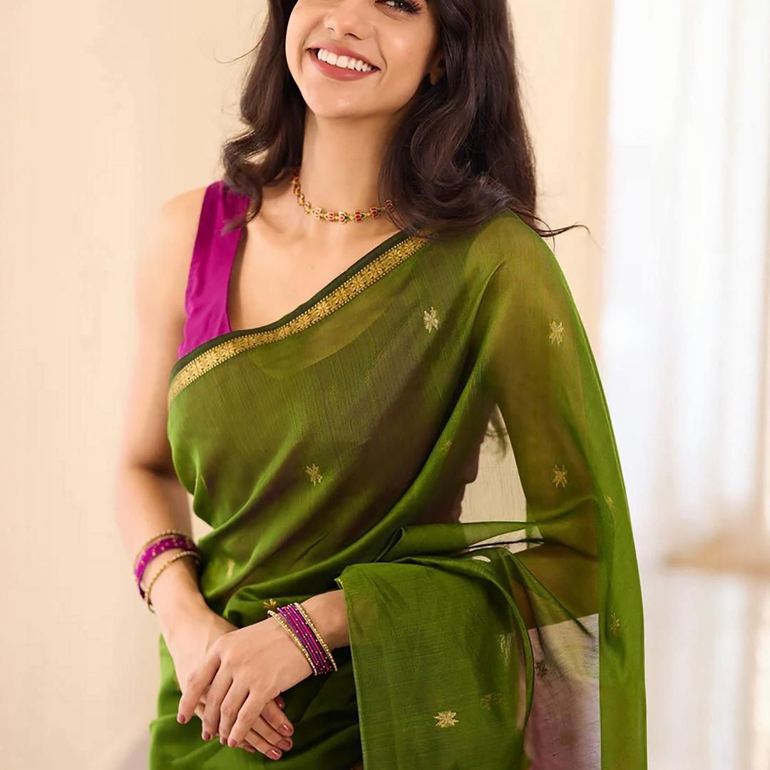 KALINI Green Silk Blend Woven Design Sarees