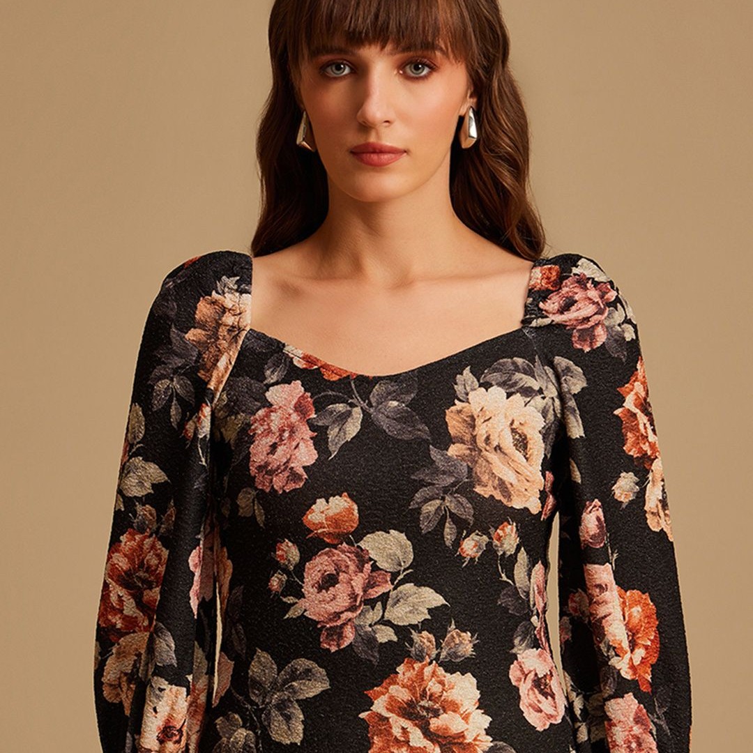 Kazo Women Black & Pink Floral Print Top