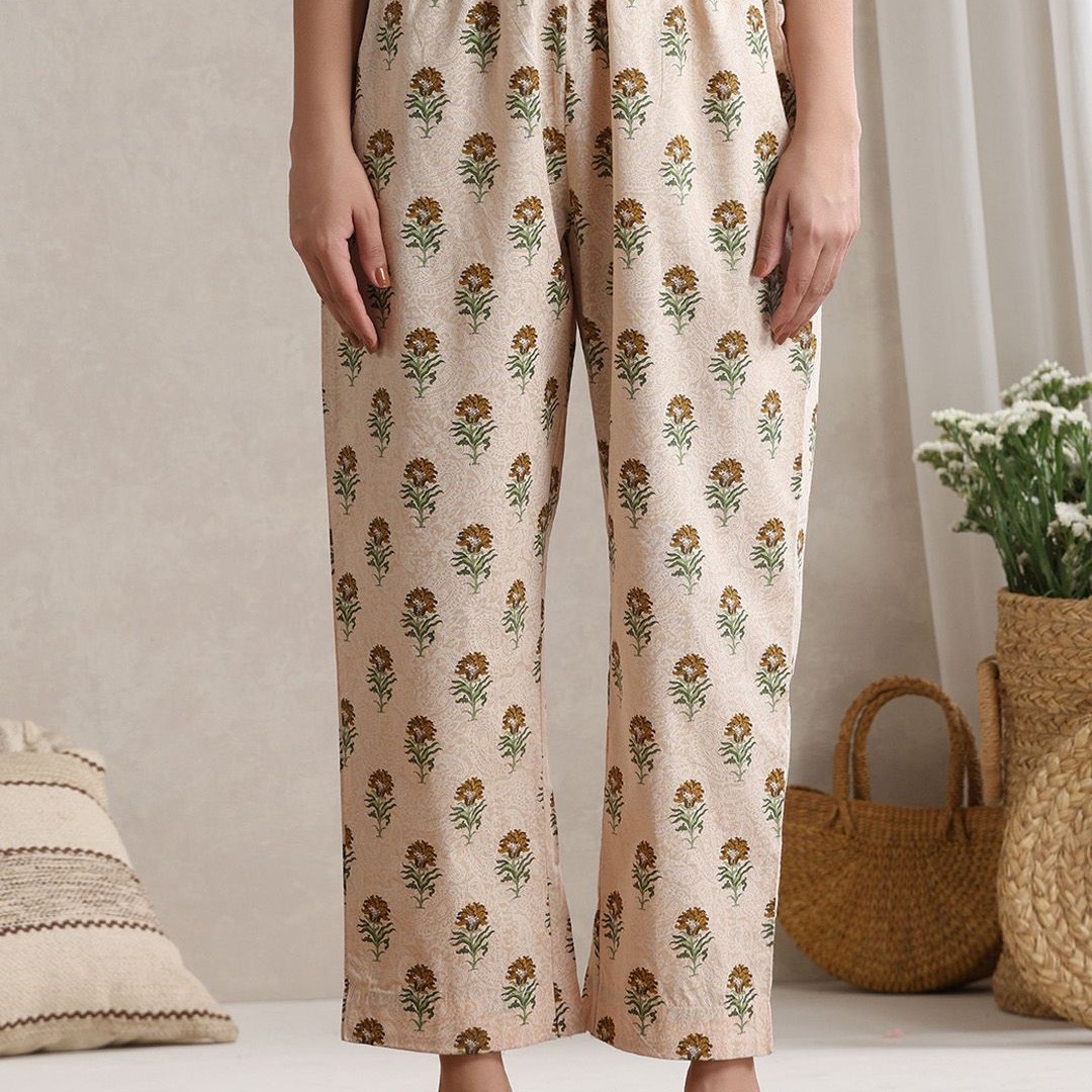 Khushal K Floral Printed V-Neck Pure Cotton Kurta With Palazzos And Dupatta