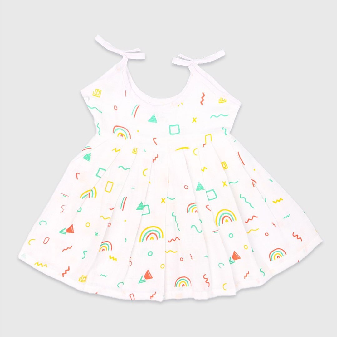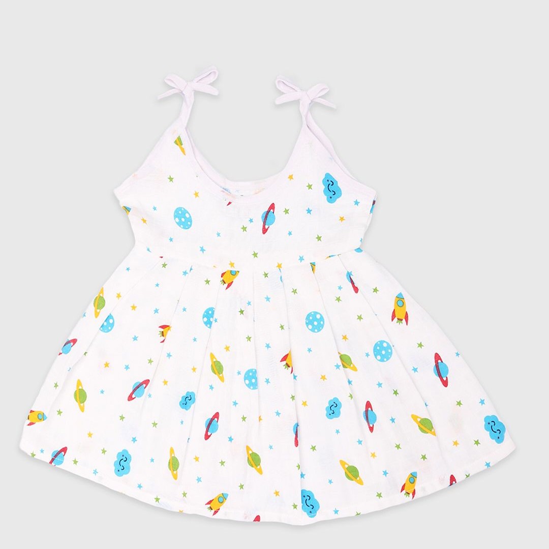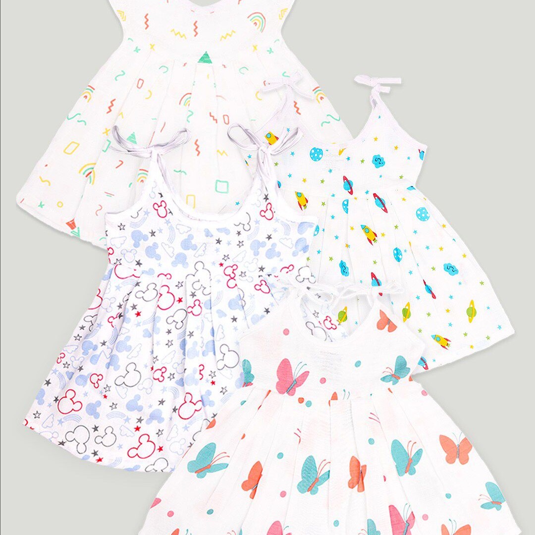 Kidbea Infant Girls Pack Of 4 Conversational Printed Round Neck Cotton Fit & Flare Dress