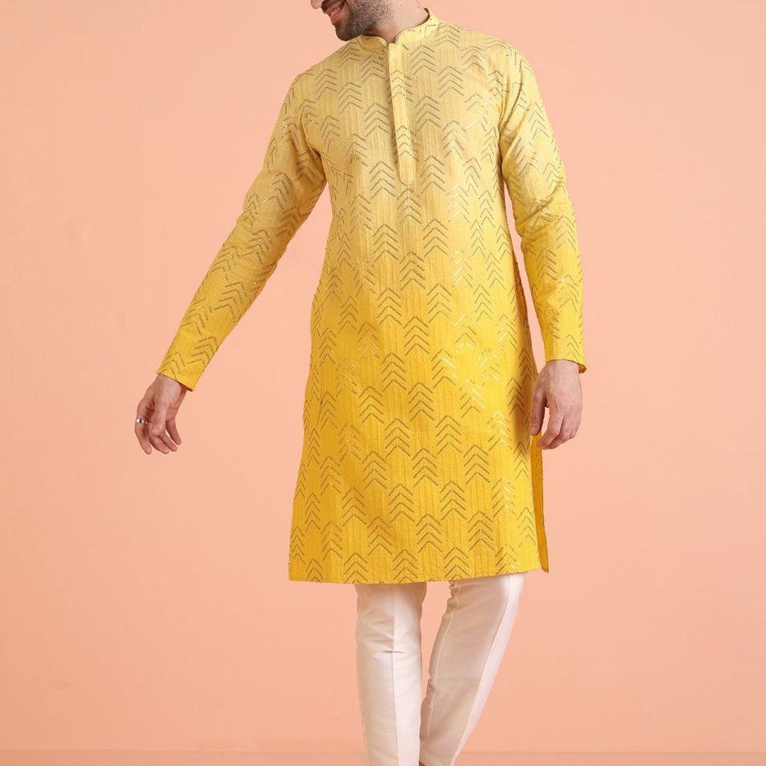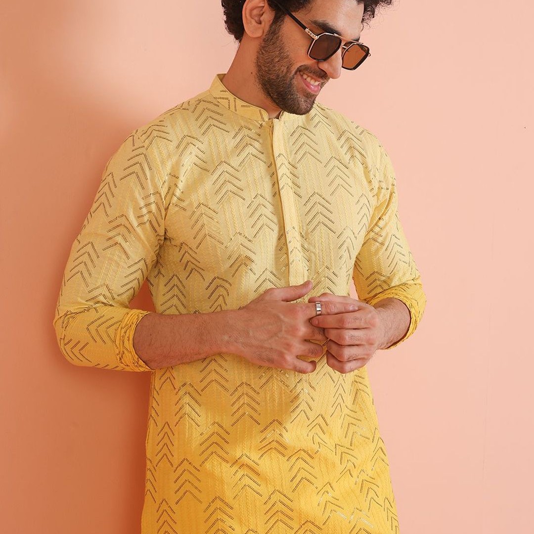 KISAH Men Paisley Embellished Mirror Work Kurta