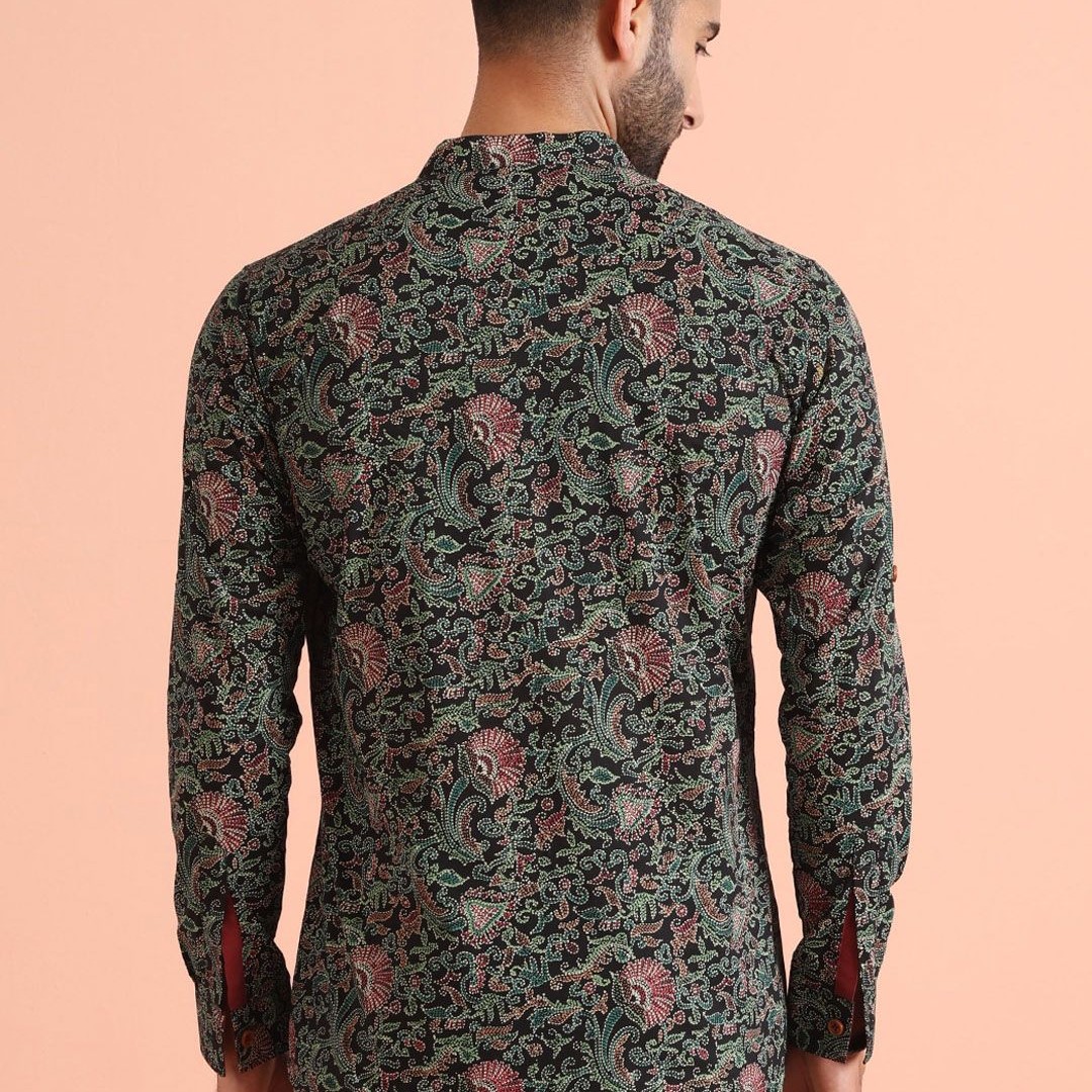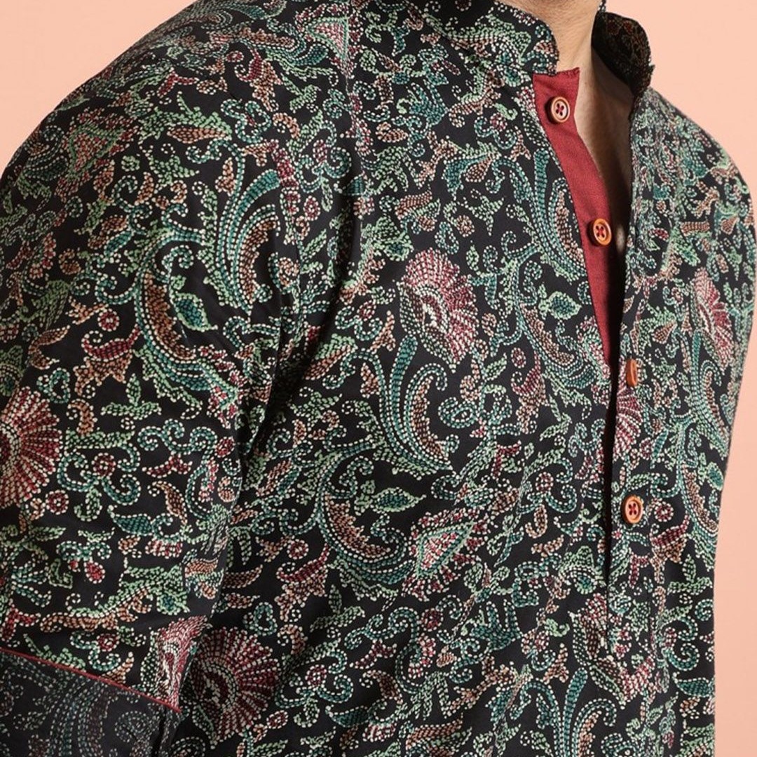 KISAH Men Paisley Embroidered Thread Work Short Kurta