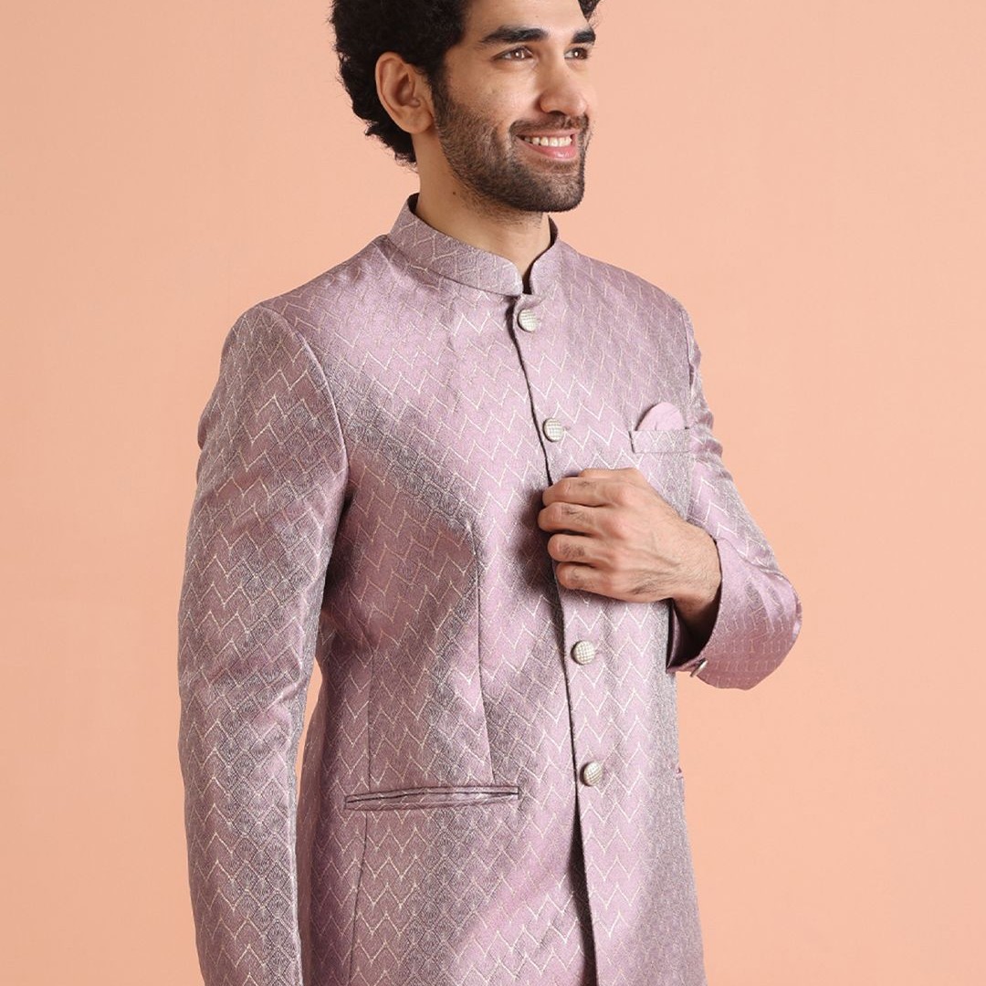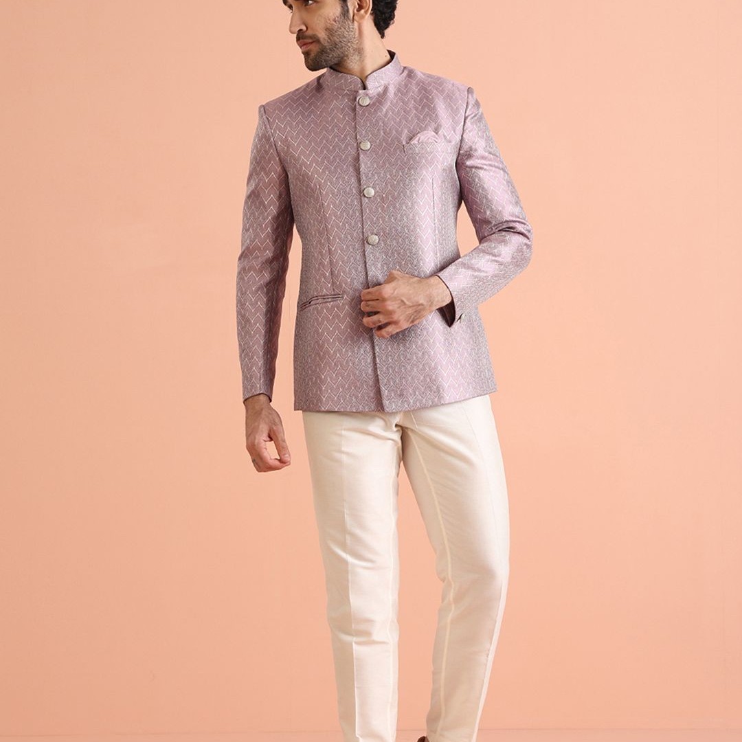 KISAH Men Self Design Jodhpuri Slim Fit Bandhgala Blazer
