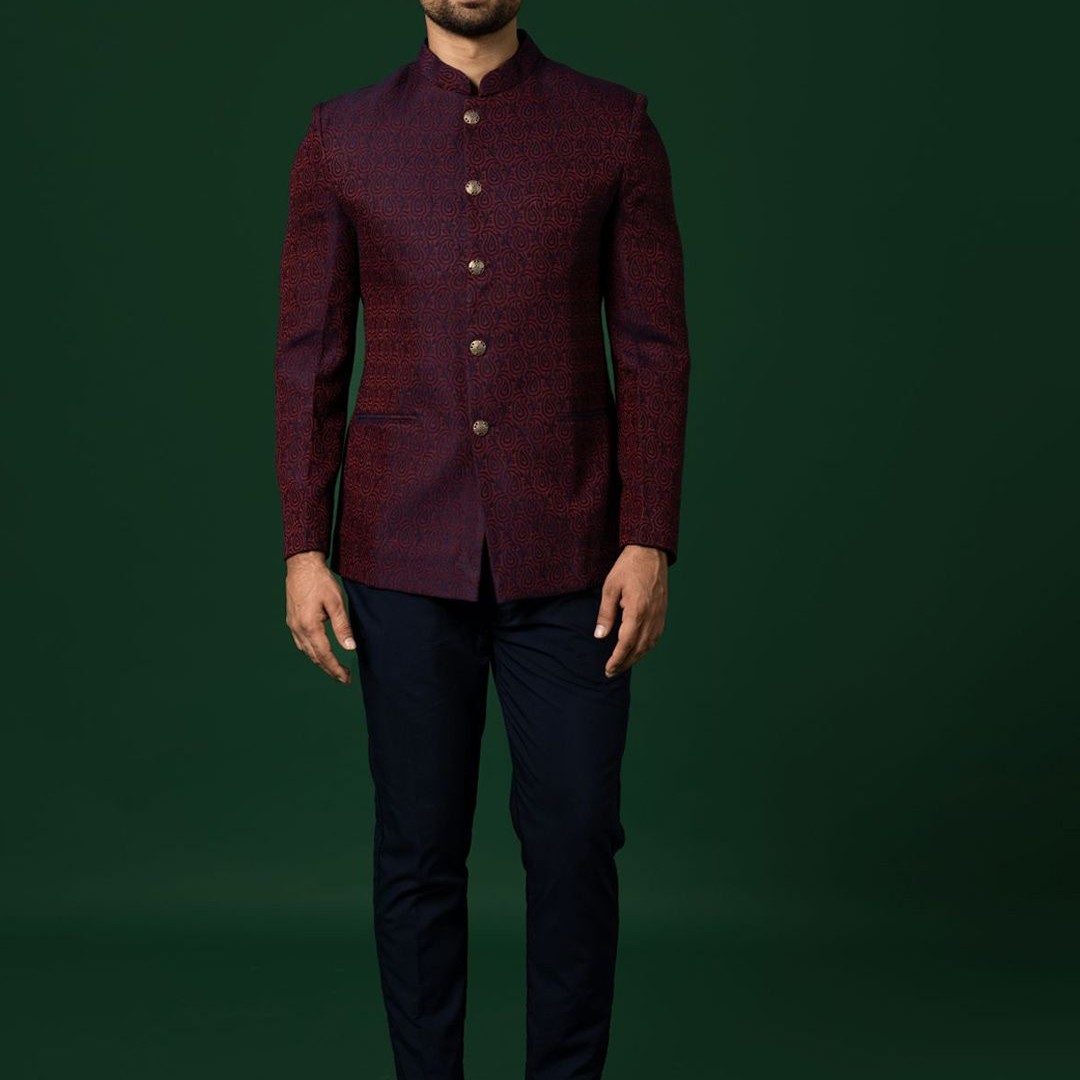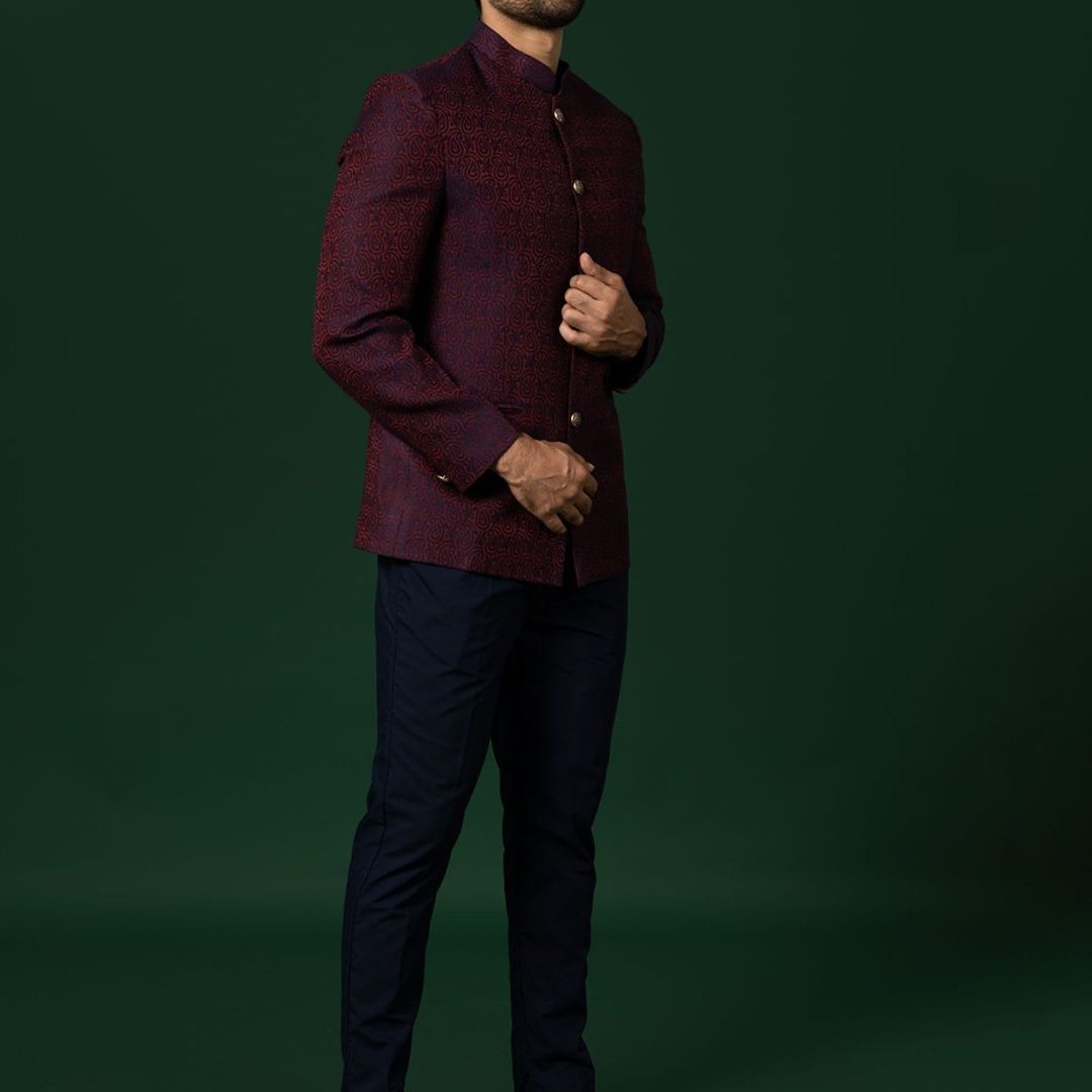 KISAH Woven-Design Bandhgala Blazer