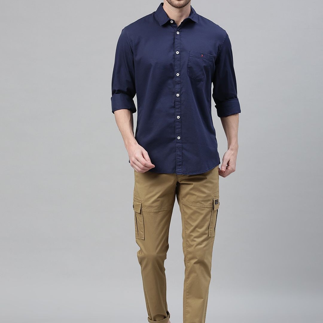 Louis Philippe Jeans Men Navy Blue Regular Fit Solid Casual Shirt