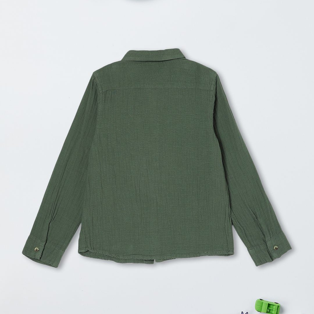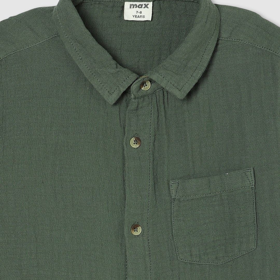 max Boys Spread Collar Solid Cotton Casual Shirt
