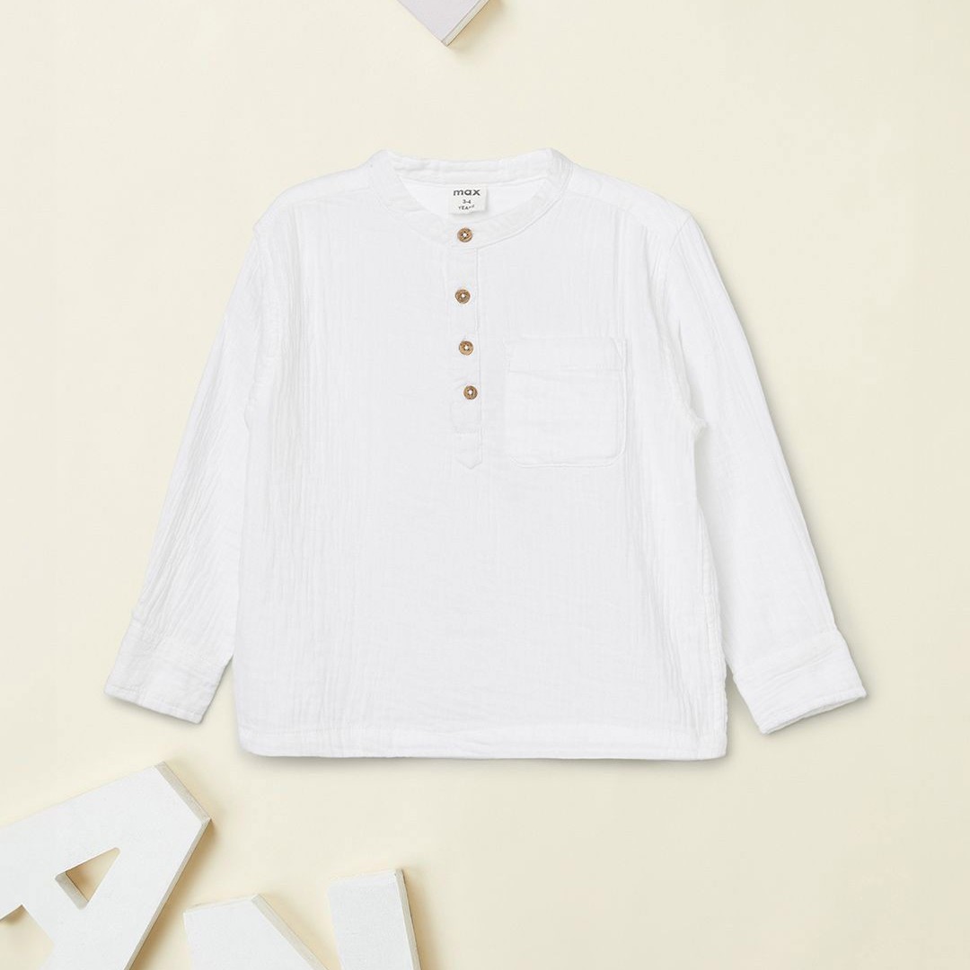 max Boys Textured Spread Collar Pure Cotton Casual Shirt