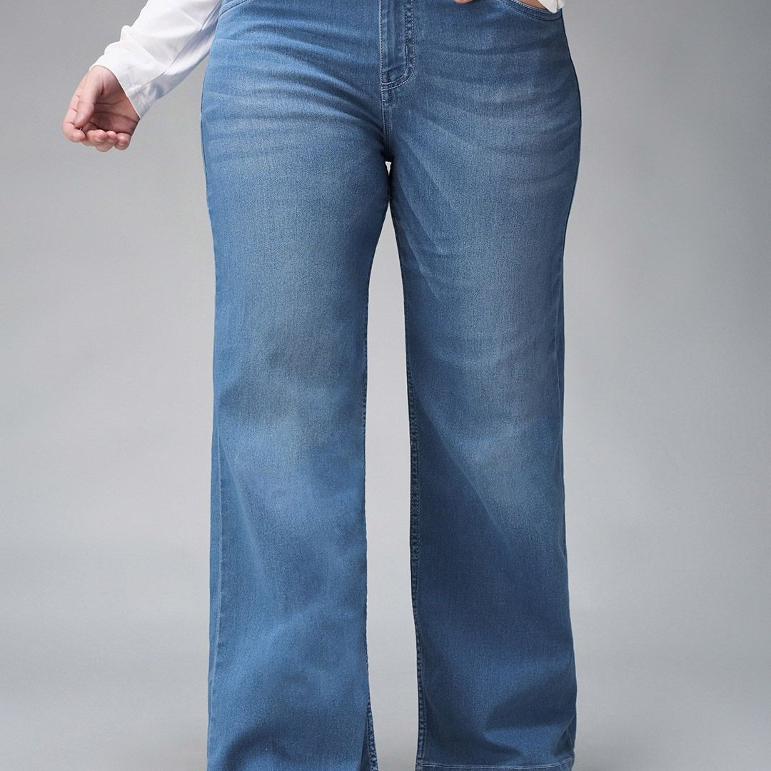 Miss Chase A+ Women Plus Size Wide Leg Light Fade Stretchable Jeans