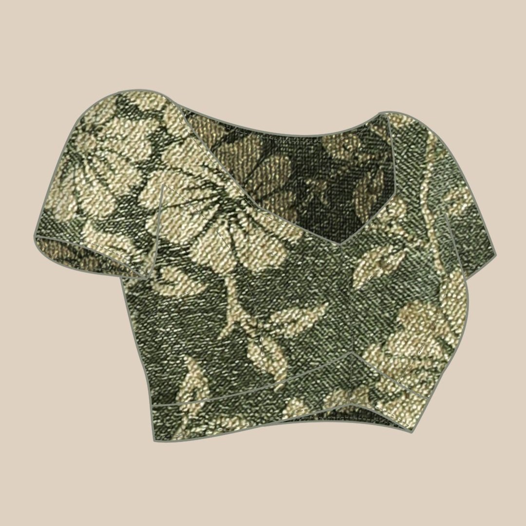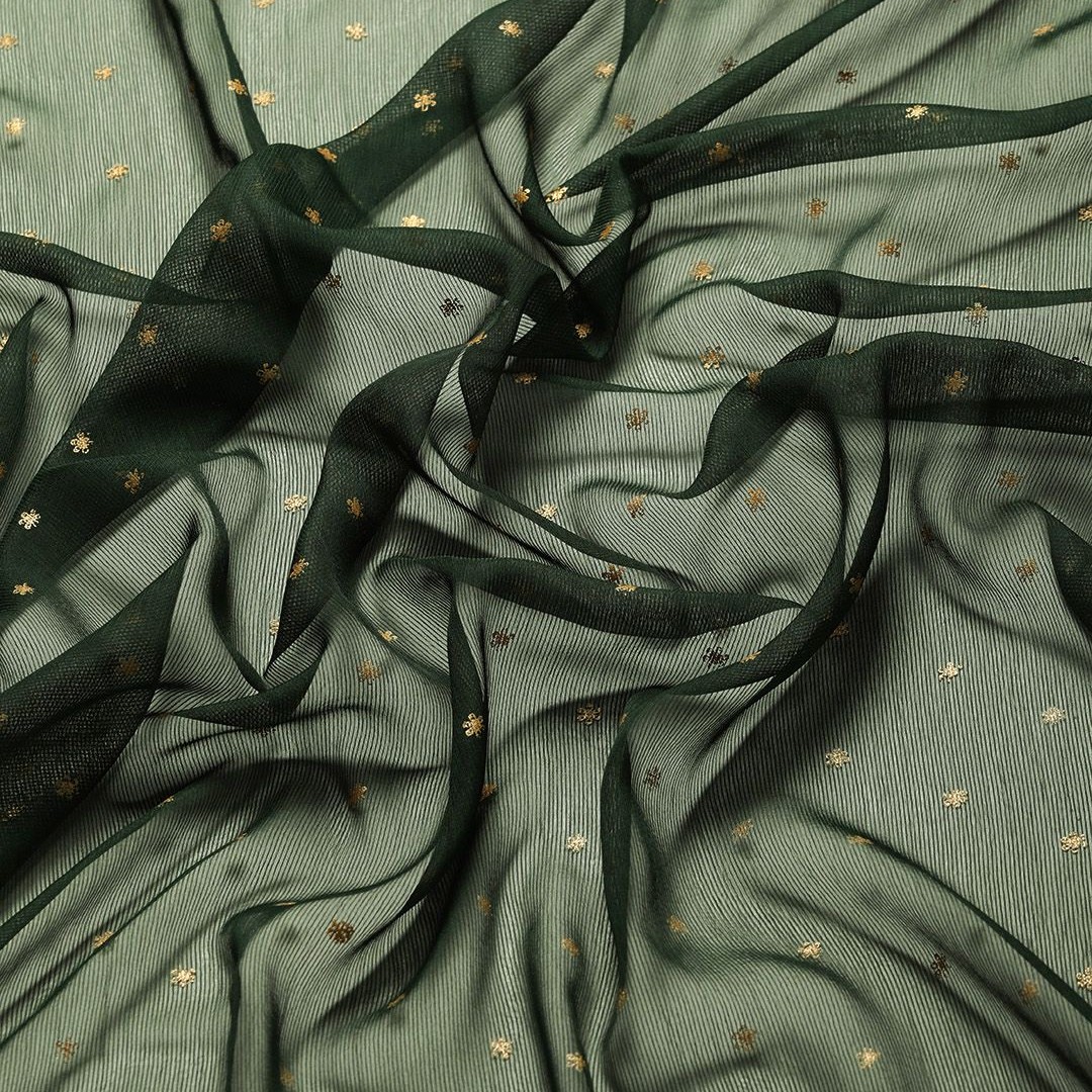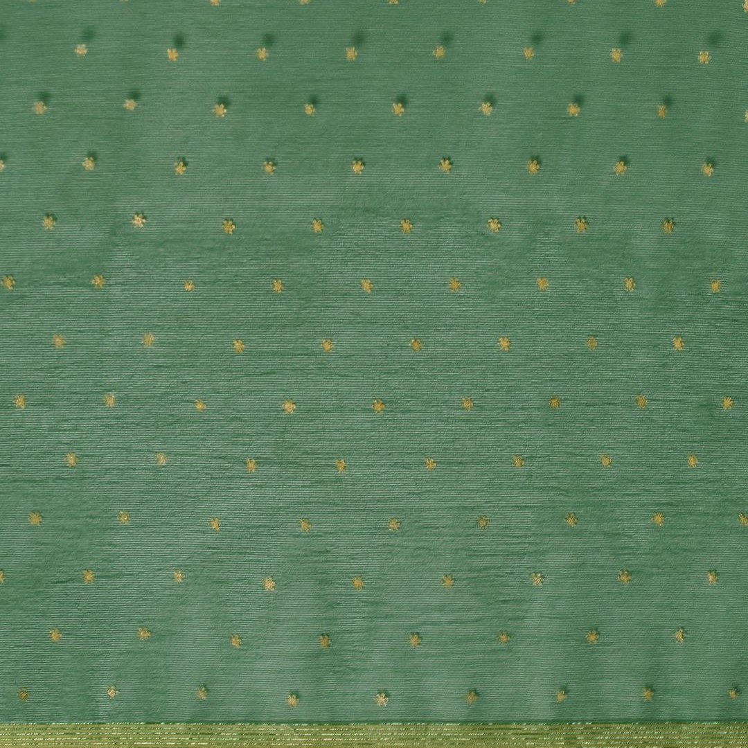 Mitera Green & Gold-Toned Floral Zari Pure Chiffon Saree