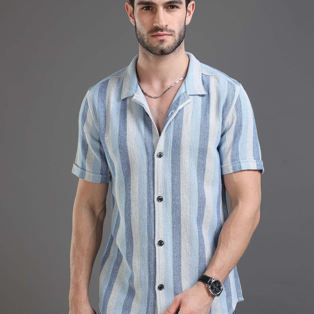Moda Rapido blue Slim Fit Striped Short Sleeves Cotton Casual Shirt