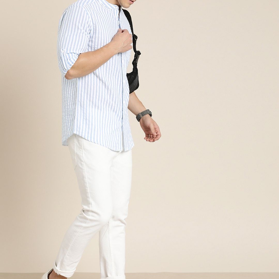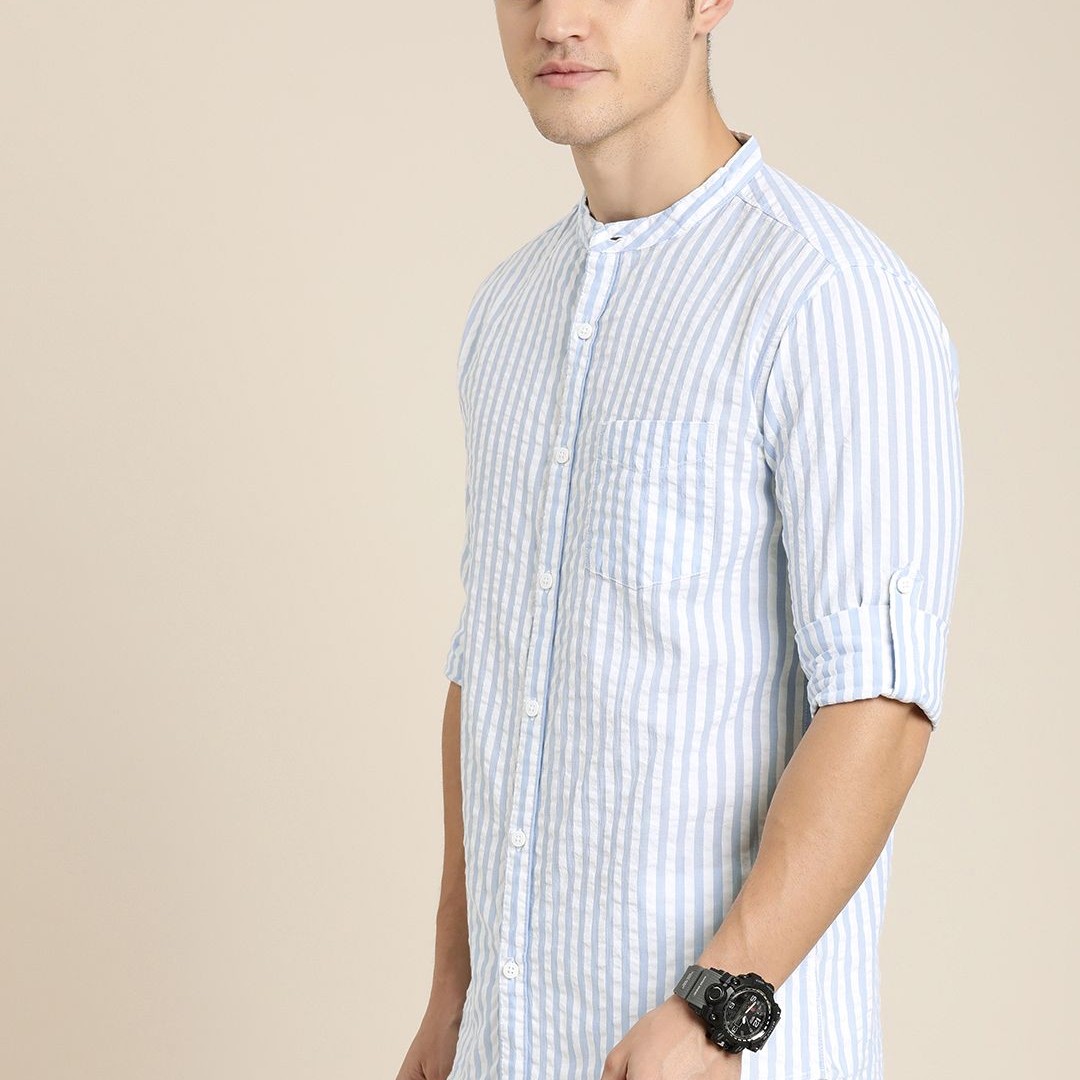 Moda Rapido Men Blue & White Slim Fit Striped Casual Shirt