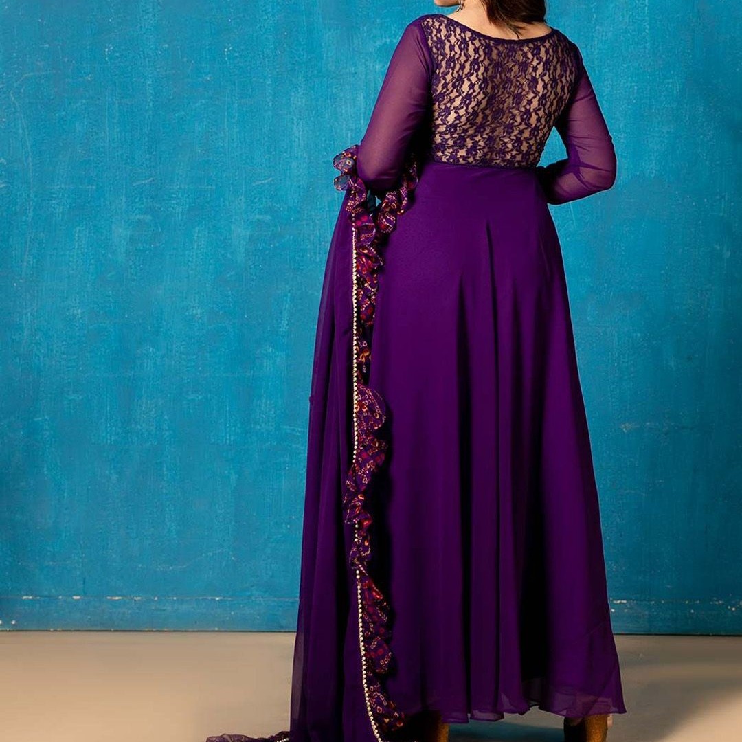 NUD Square Neck Gotta Patti Georgette Anarkali Kurta With Dupatta