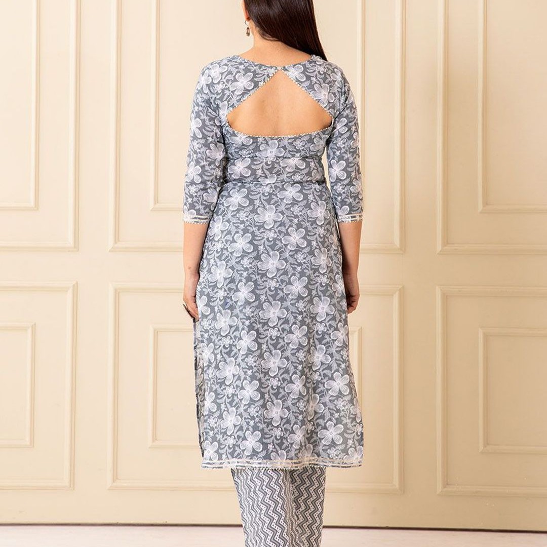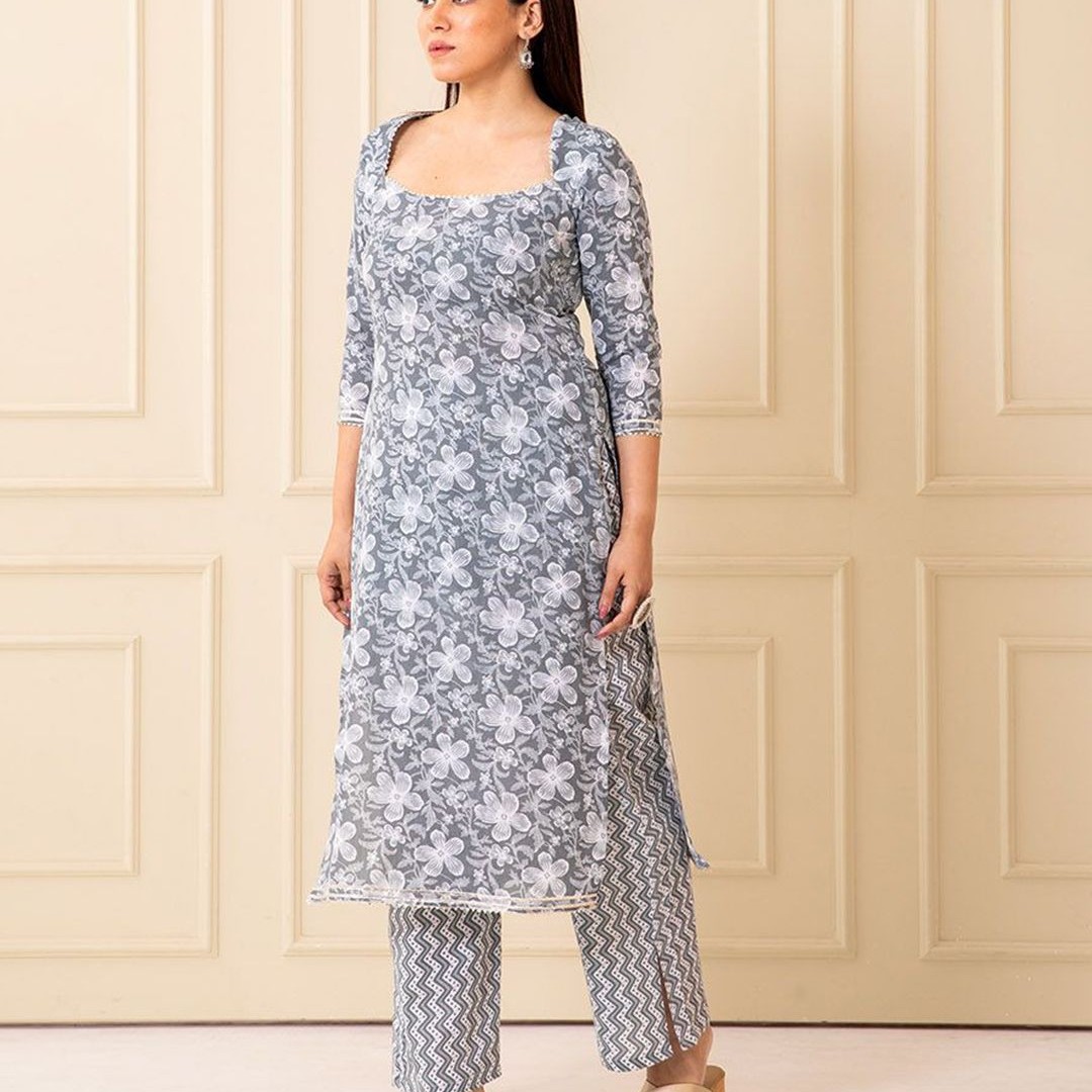 NUD Women Floral Printed Square Neck A-Line Regular Kurta