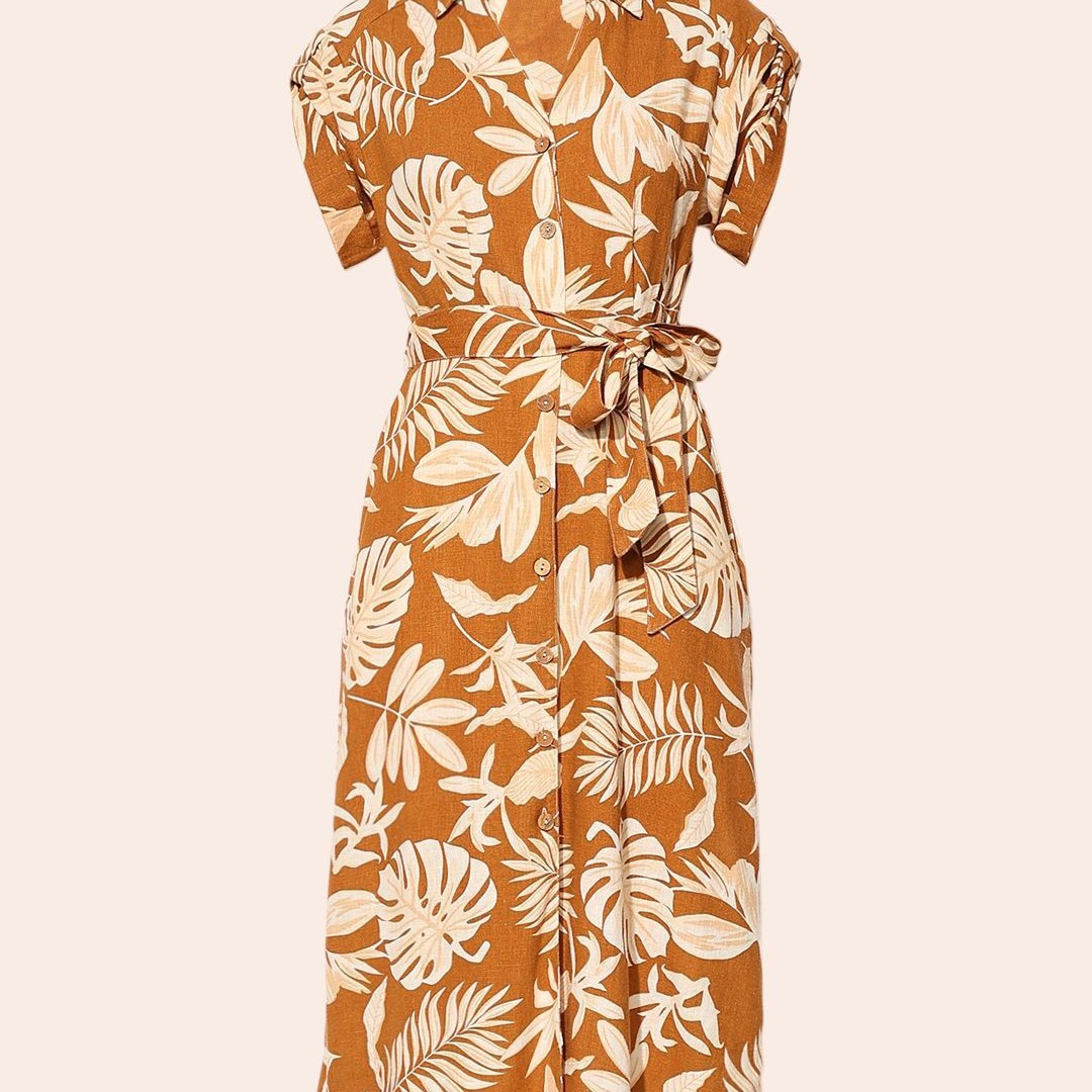 ONLY Women Floral Print Shirt Collar Short Sleeves Shirt Midi Dress