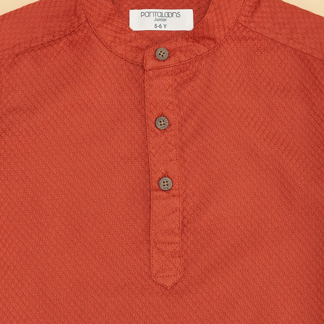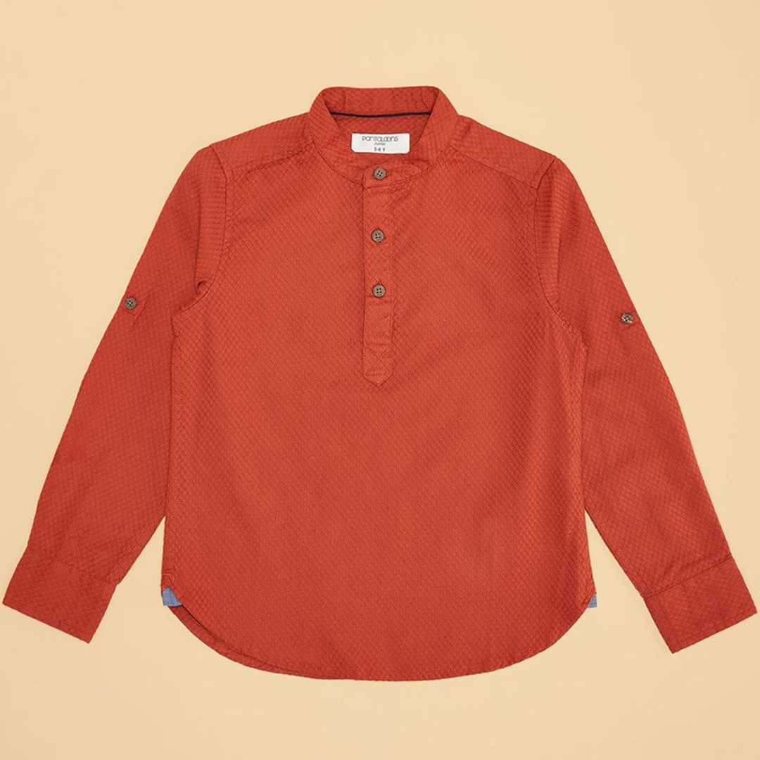 Pantaloons Junior Boys Mandarin Collar Solid Party Shirt