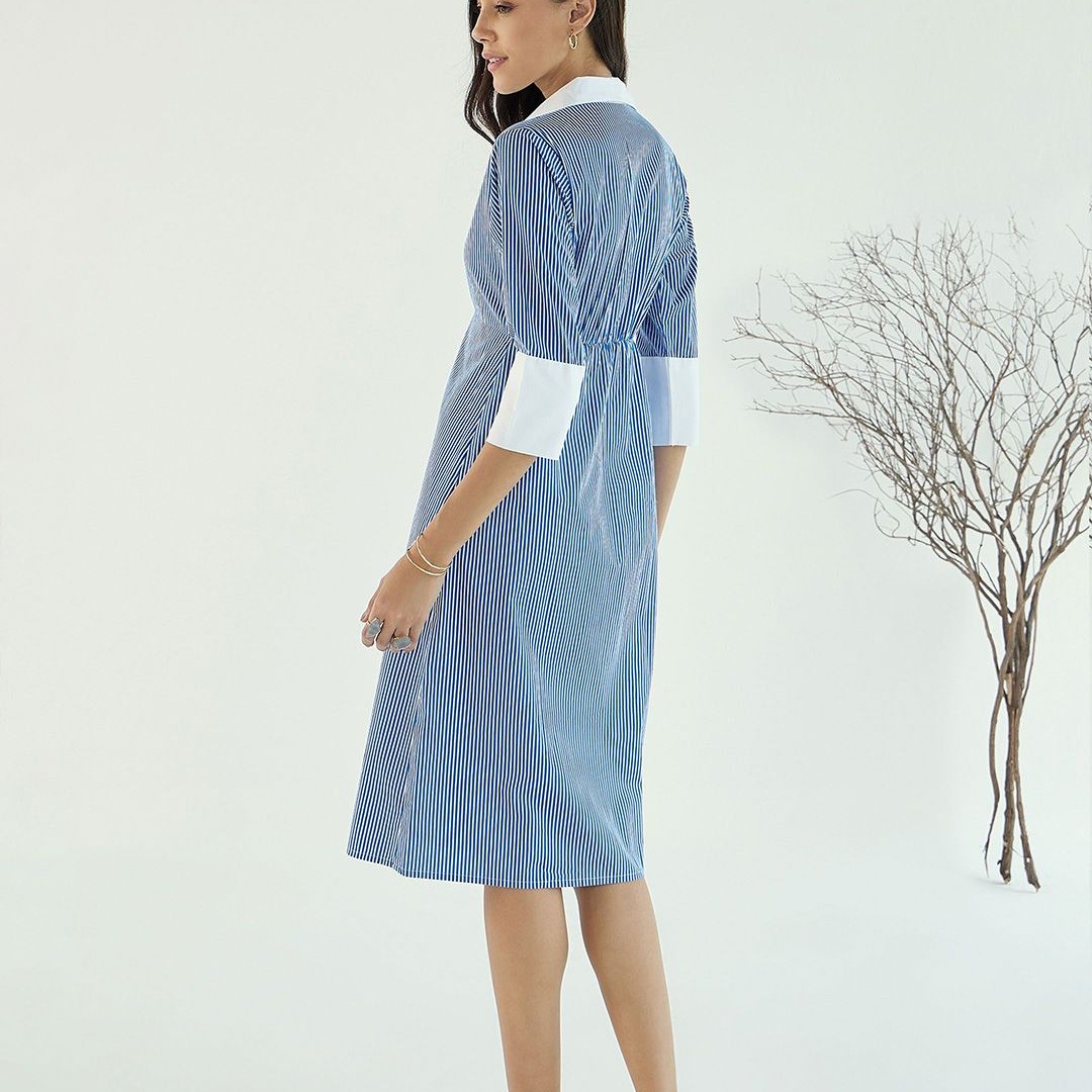 Pink Paprika by SASSAFRAS Striped A-Line Midi Cotton Dress