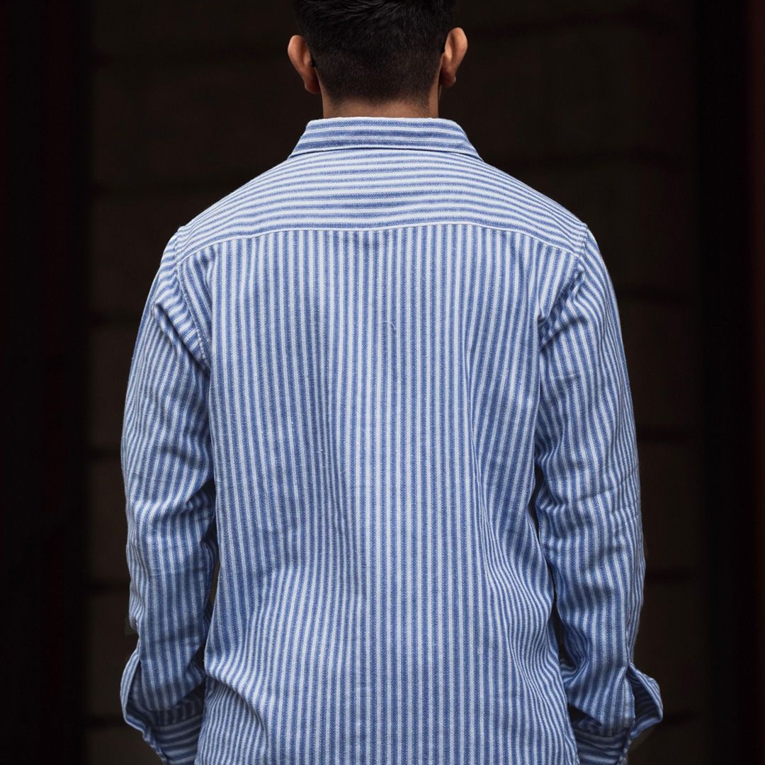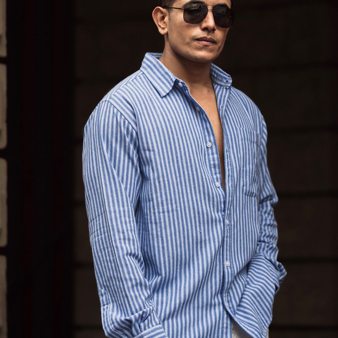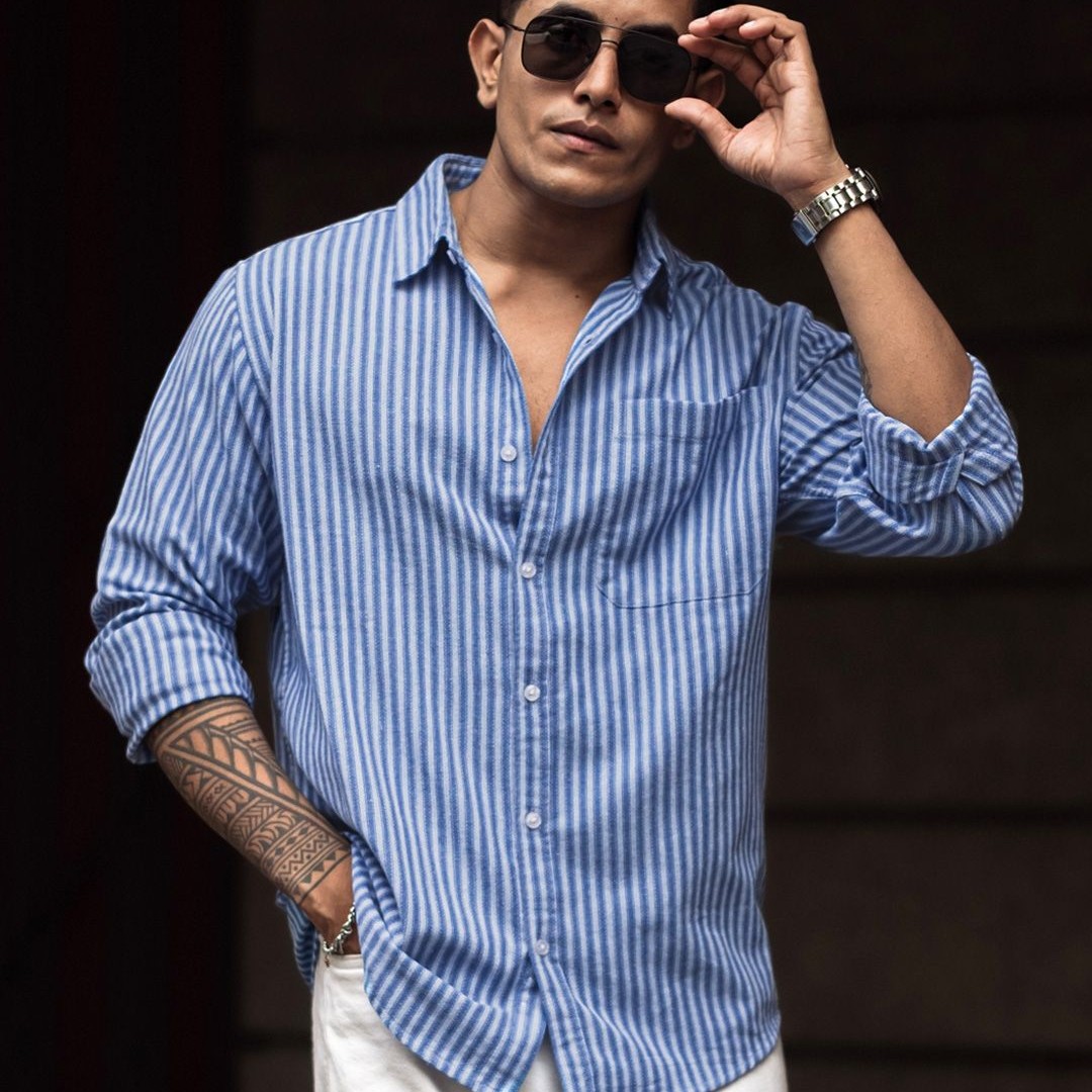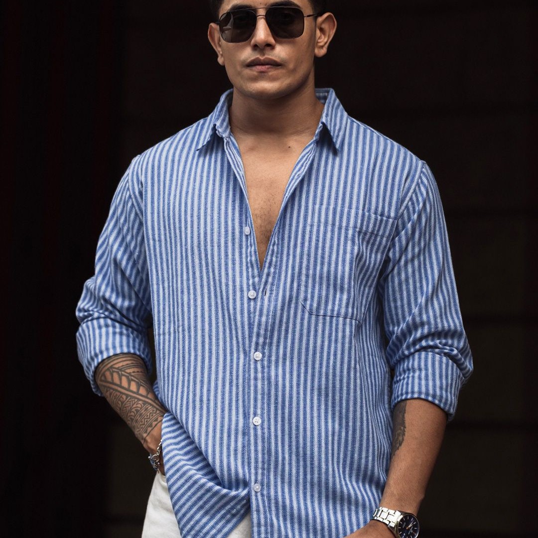 Powerlook Men Spread Collar Vertical Striped Cotton Casual Shirt