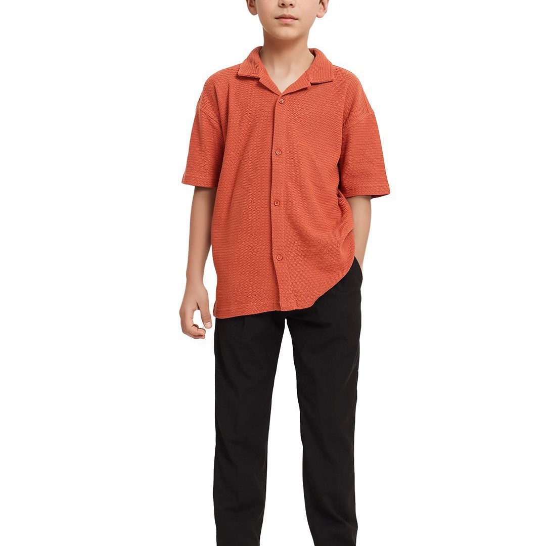Rare Ones Boys Cuban Collar Jacquard Shirt