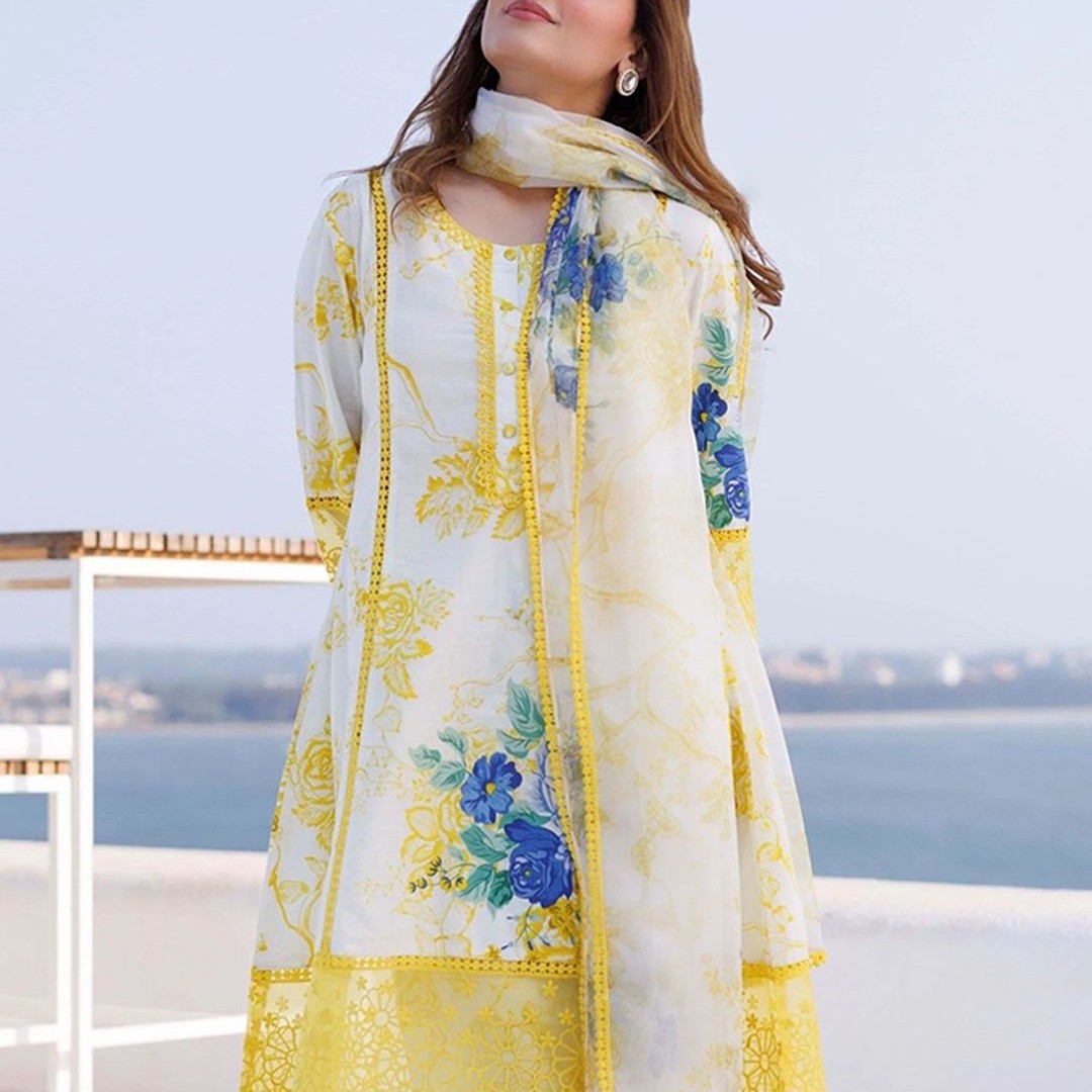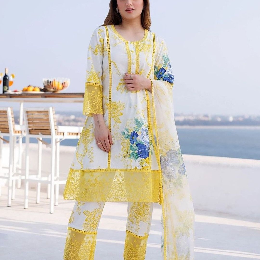 Royal Export Women Embroidered Floral Printed i Style Kurta with Trouser & Dupatta