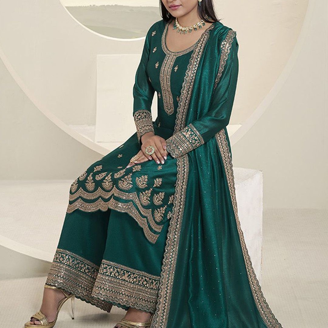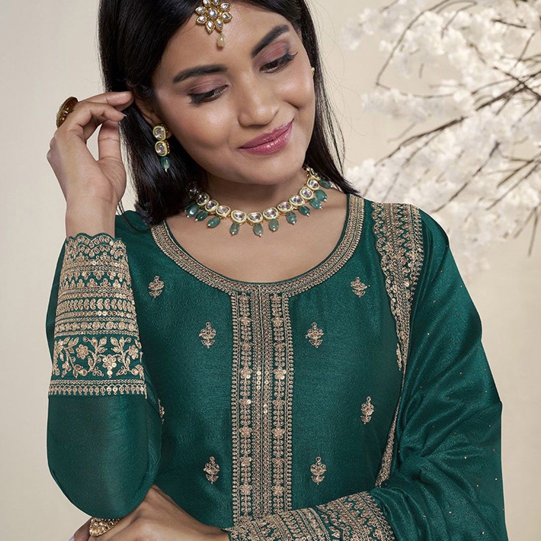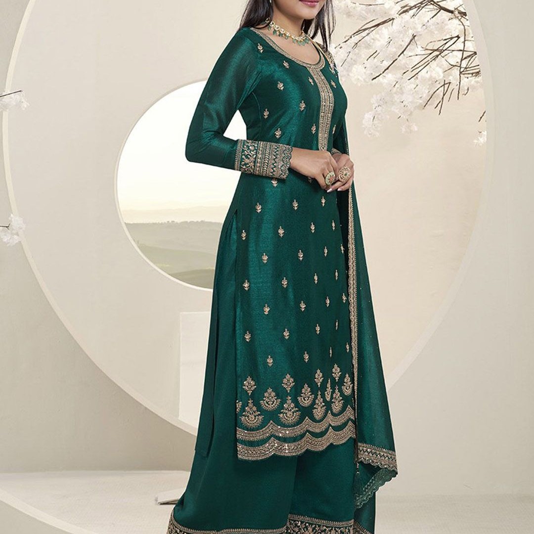 Seerat Ethnic Motifs Embroidered Sequinned Silk Georgette Kurta with Palazzo & Dupatta