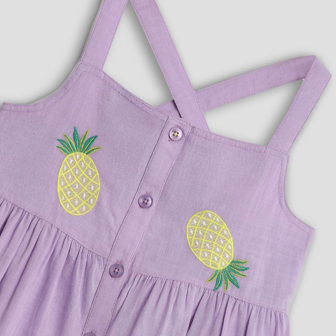 Somersault Girls Conversational Embroidered Fit & Flare Cotton PLeated Dress