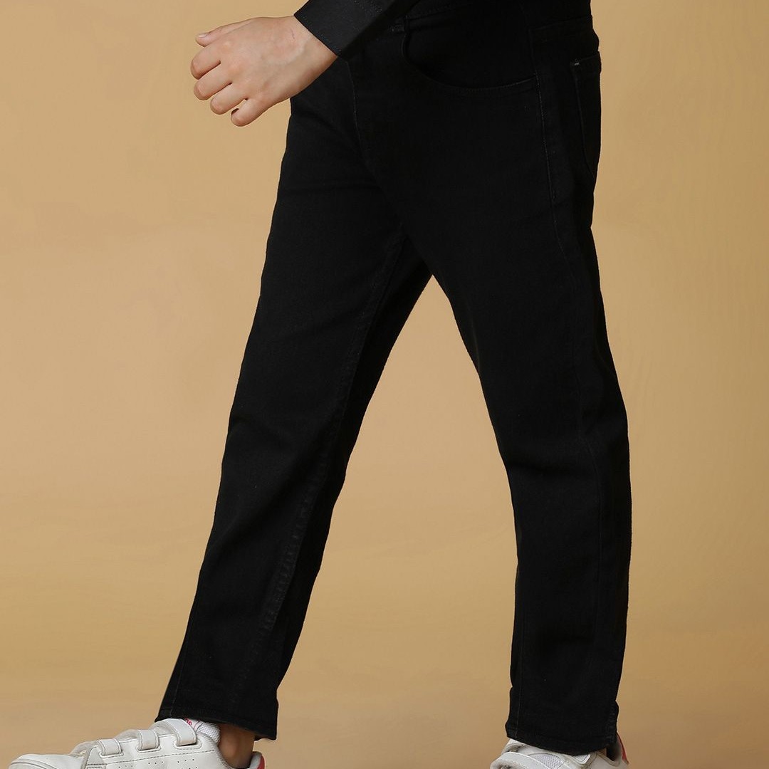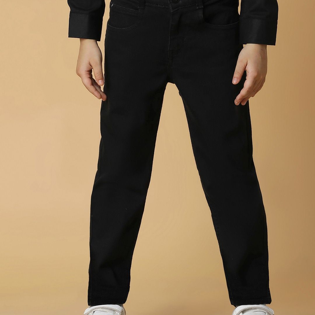 TALES & STORIES Boys Black Slim Fit Mid-Rise Clean Look Denim Jeans