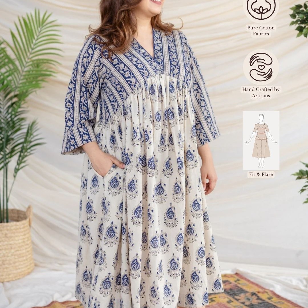 THE INDIAN ETHNIC CO Women Floral Print A-Line Midi Dress