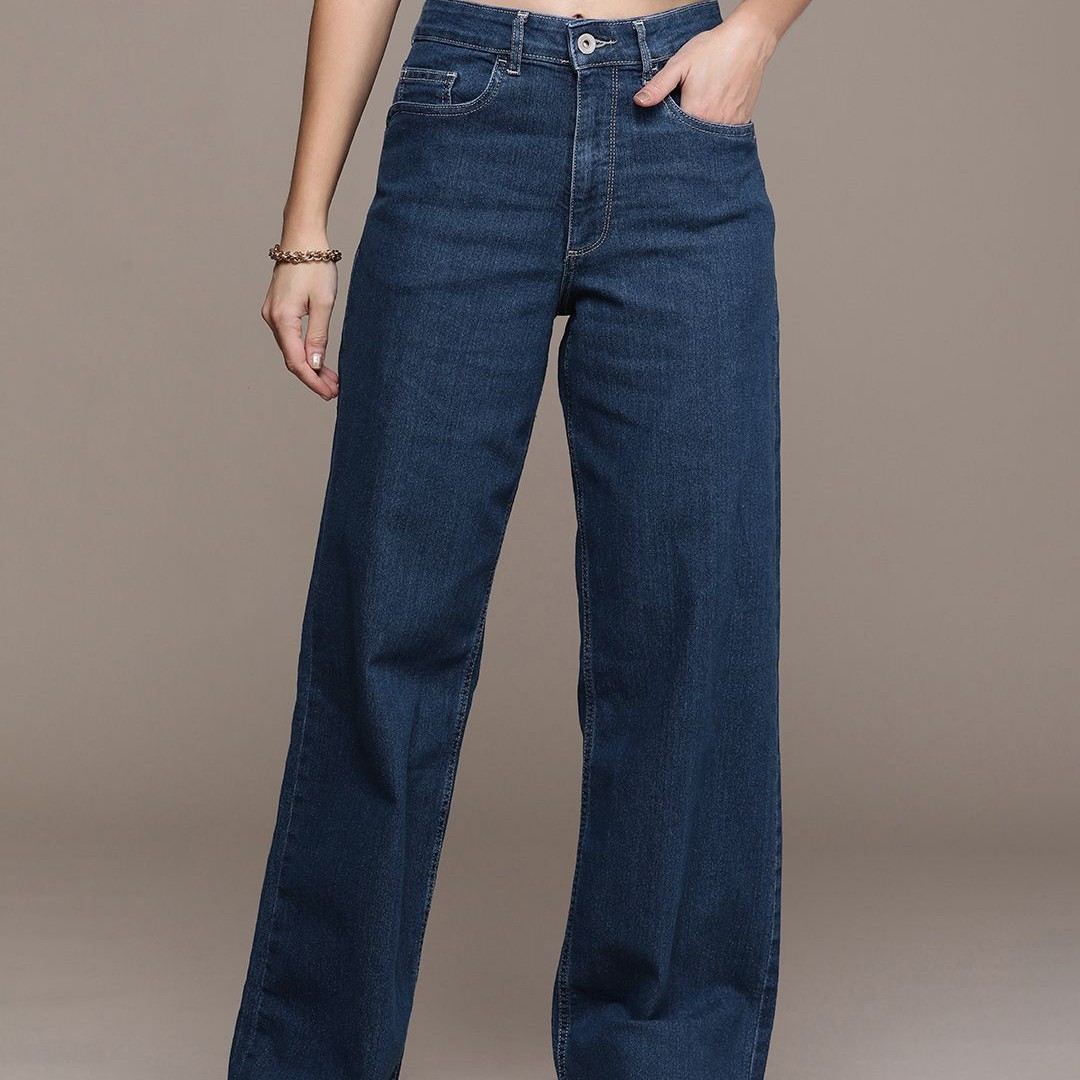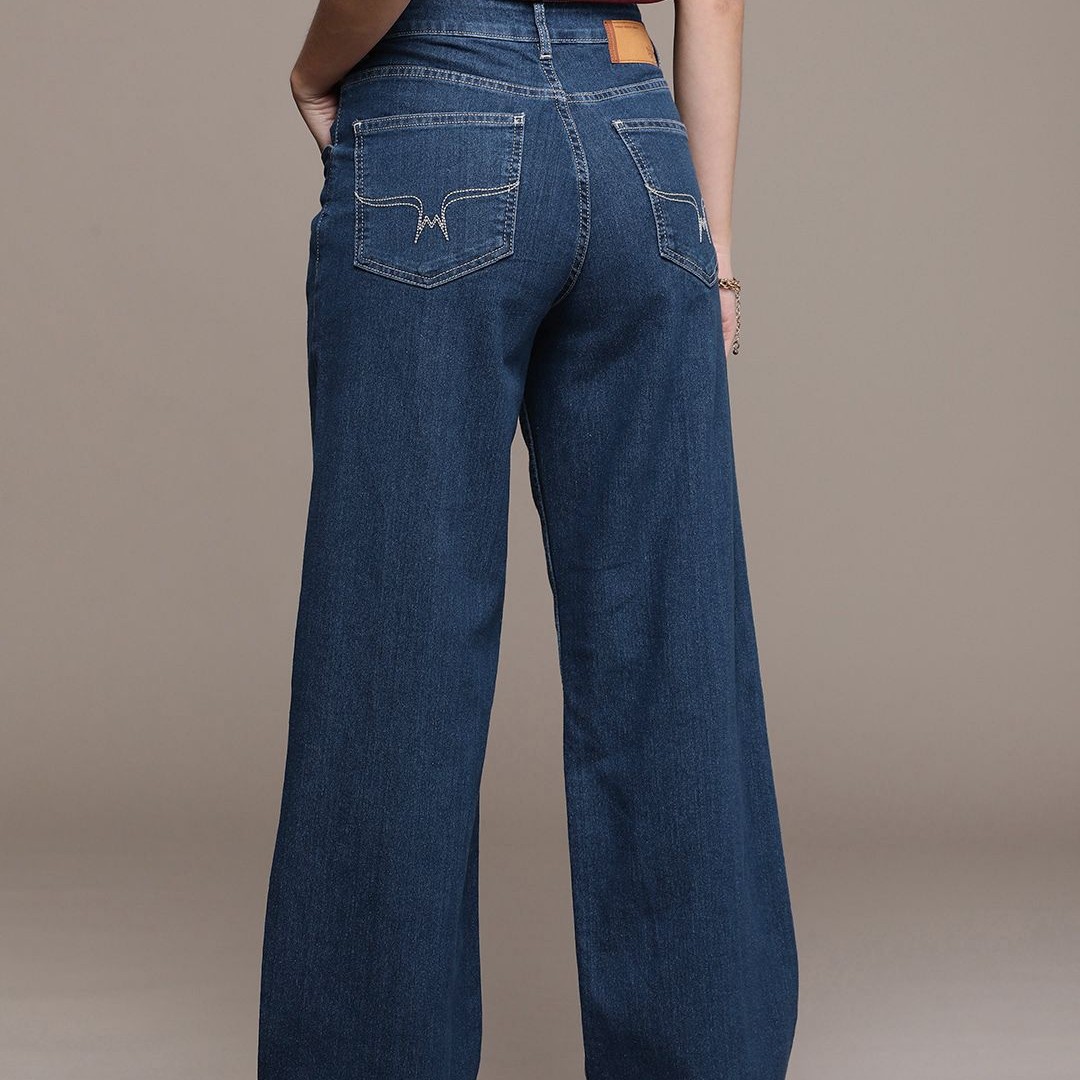 The Roadster Life Co. Women Wide Leg High-Rise Light Fade Stretchable Jeans