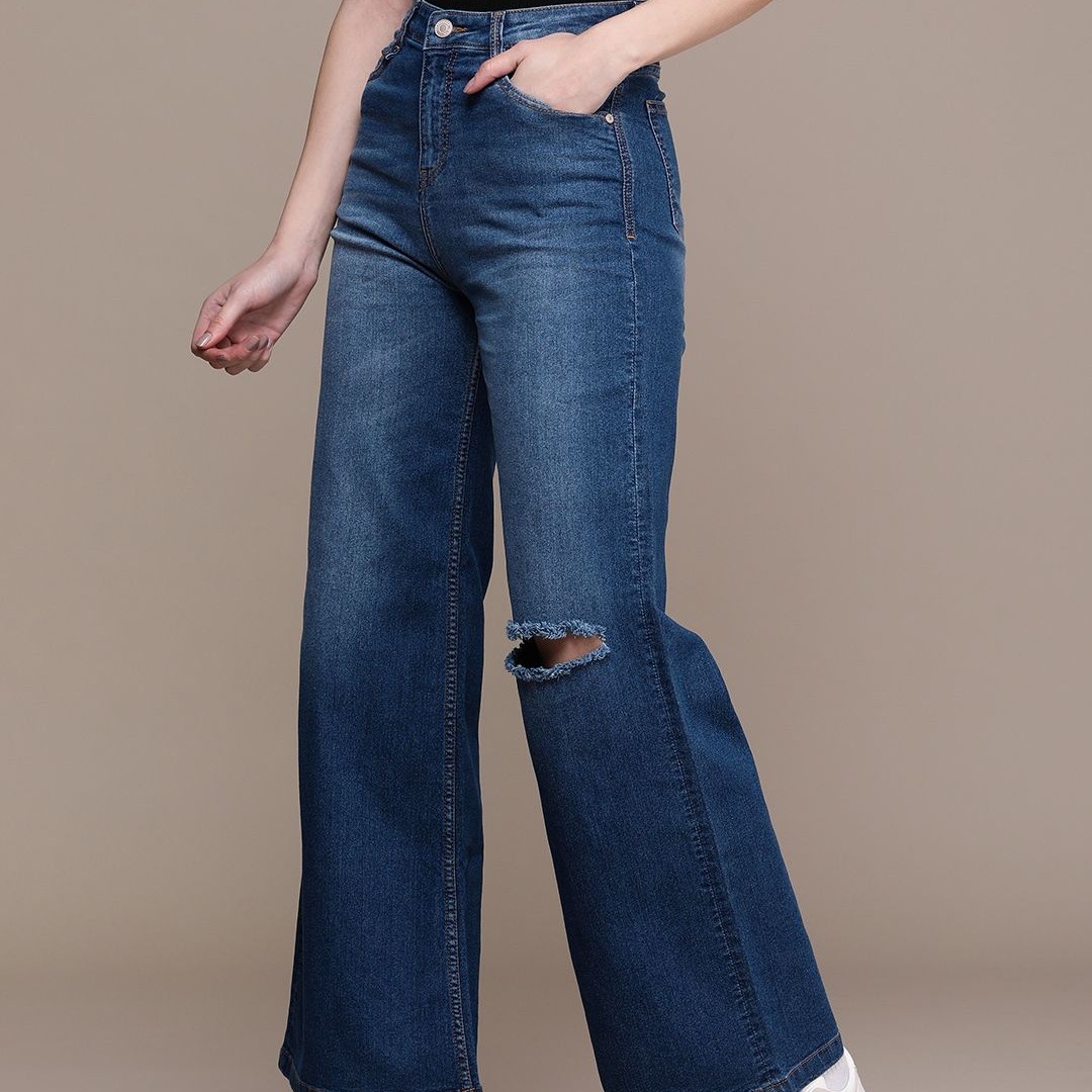 The Roadster Life Co. Women Wide Leg High-Rise Slash Knee Light Fade Stretchable Jeans