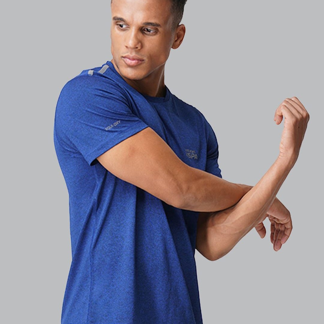U.S. Polo Assn. Men Melange Blue Solid Athleisure Lounge T-shirt