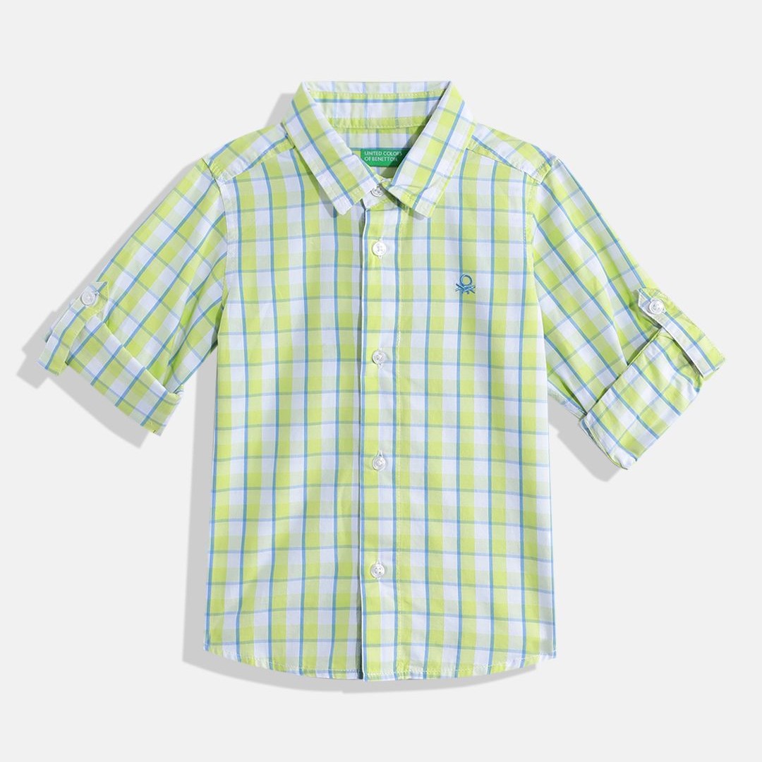 United Colors of Benetton Boys Cotton Windowpane Checked Casual Shirt