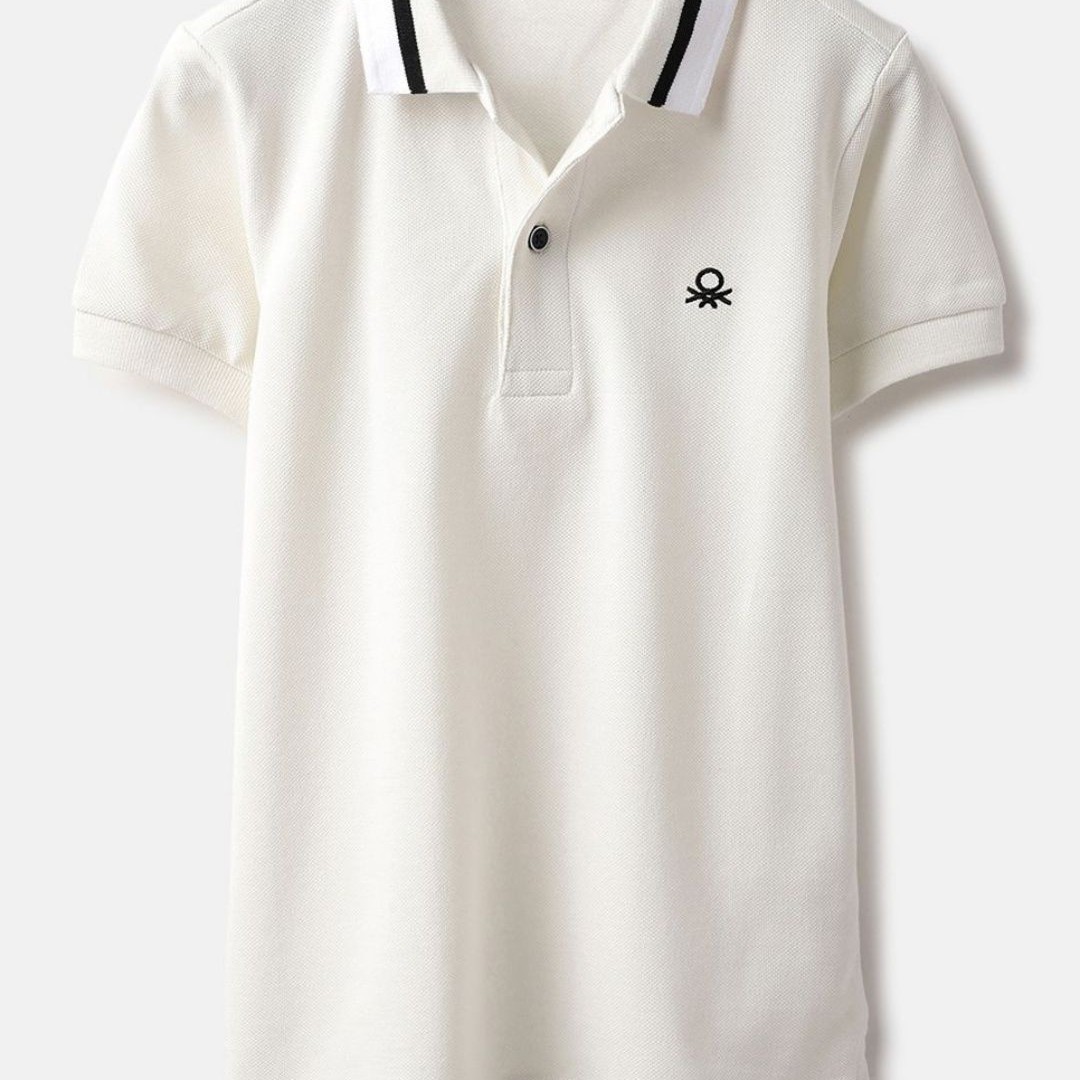 United Colors of Benetton Boys Polo Collar Extended Sleeves Pure Cotton T-shirt