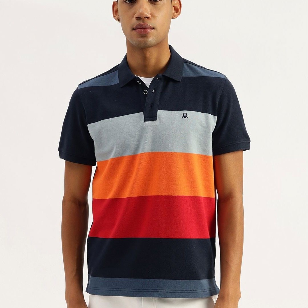 United Colors of Benetton Men Striped Polo Collar Cotton Relaxed Fit T-shirt