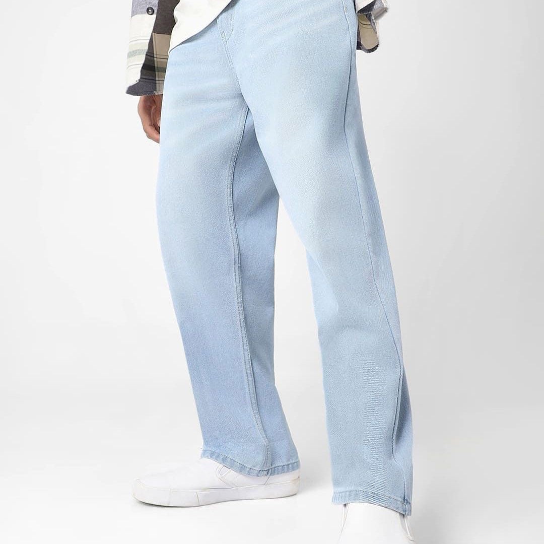 Urbano Fashion Men's Ice Blue Loose Baggy Fit Washed Jeans Non-Stretchable