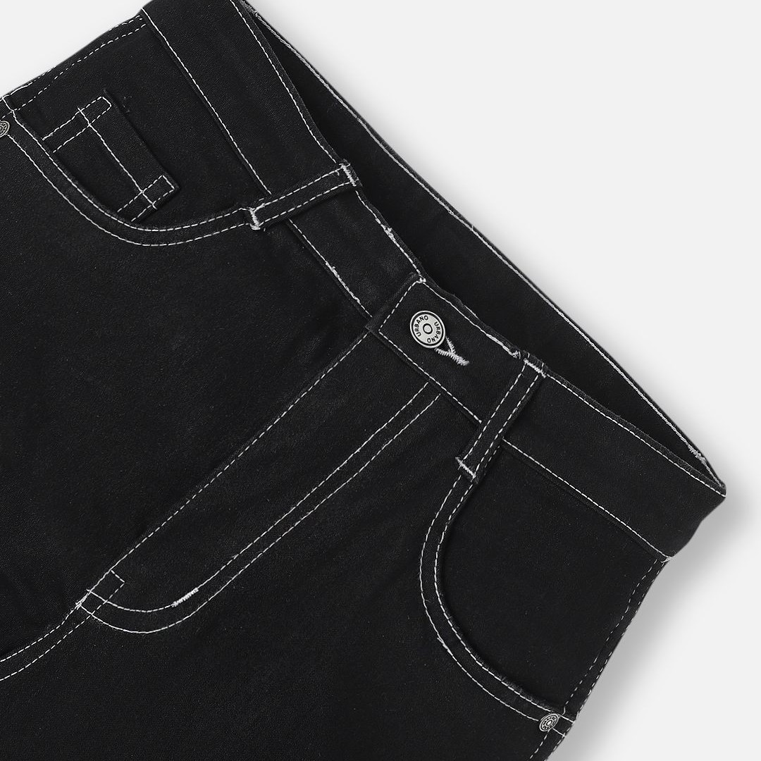 Urbano Juniors Boy's Black Loose Baggy Fit Washed Denim Cargo Jeans with Stretchable