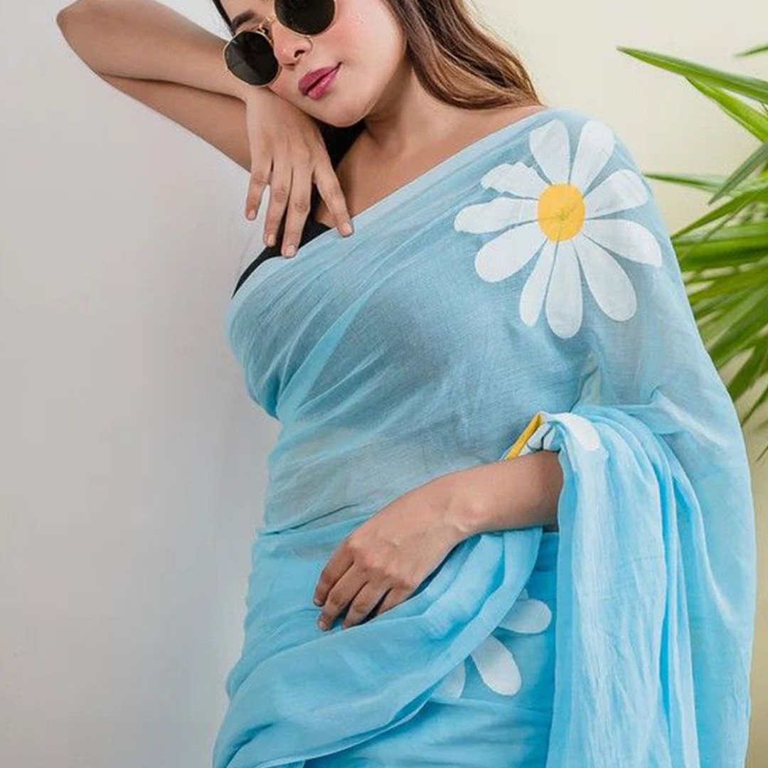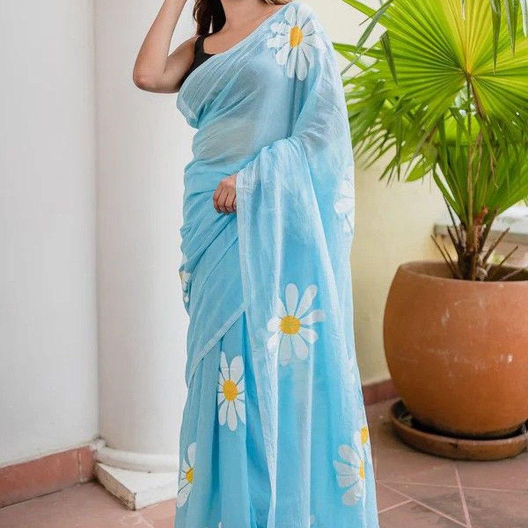 VILLAGIUS Floral Printed Pure Cotton Saree
