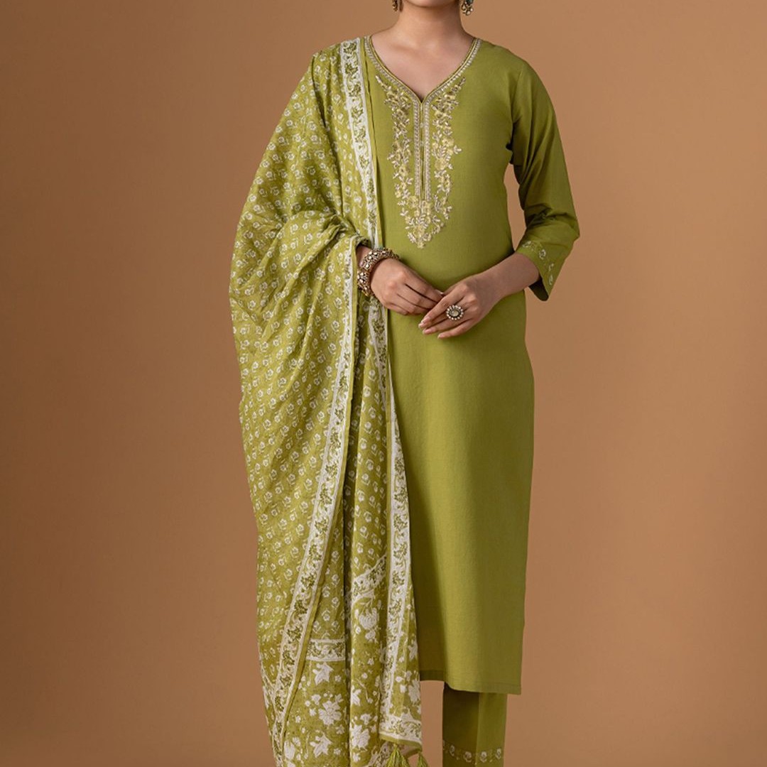 WOMEN PLUS Women Ethnic Motifs Printed Cotton Kurta with Trousers & Dupatta
